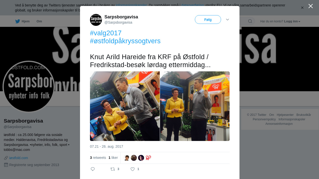 RT @Sarpsborgavisa: #valg2017 #østfoldpåkryssogtvers Knut Arild Hareide fra KRF på Østfold / Fredrikstad-besøk lørdag ettermiddag... http…