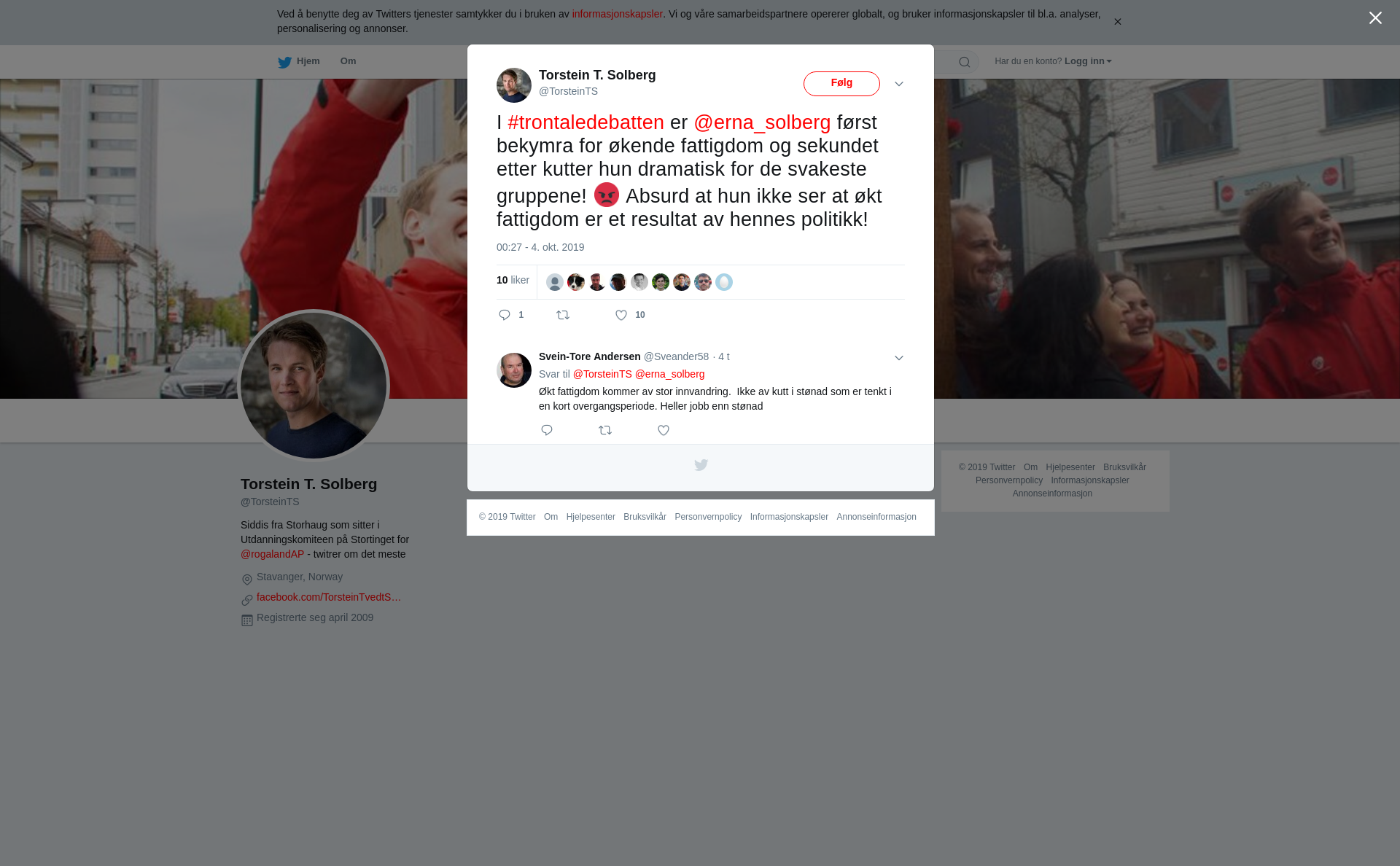 I #trontaledebatten er @erna_solberg først bekymra for økende fattigdom og sekundet etter kutter hun dramatisk for de svakeste gruppene! 😡 Absurd at hun ikke ser at økt fattigdom er et resultat av hennes politikk!
