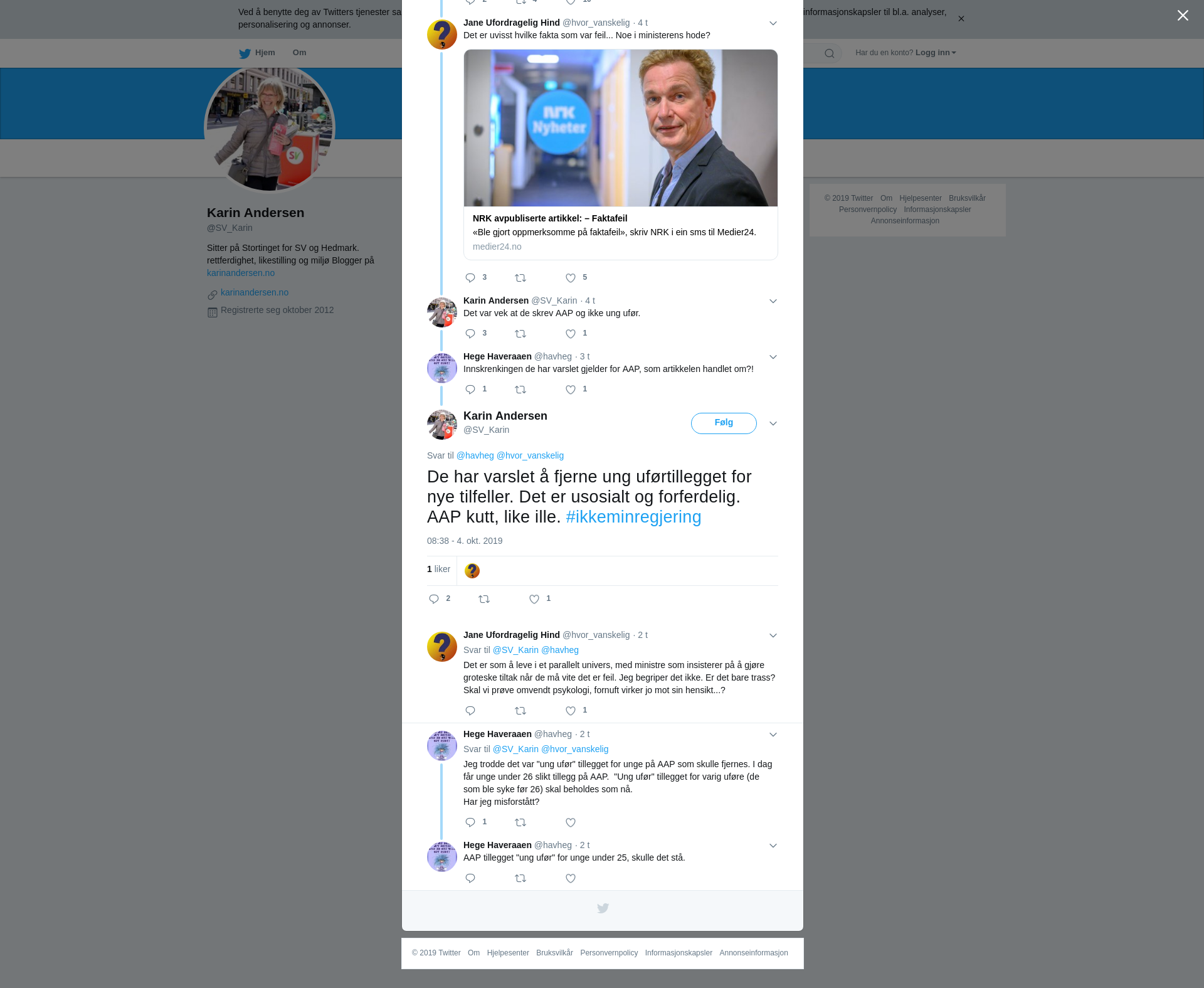 @havheg @hvor_vanskelig De har varslet å fjerne ung uførtillegget for nye tilfeller. Det er usosialt og forferdelig. AAP kutt, like ille. #ikkeminregjering