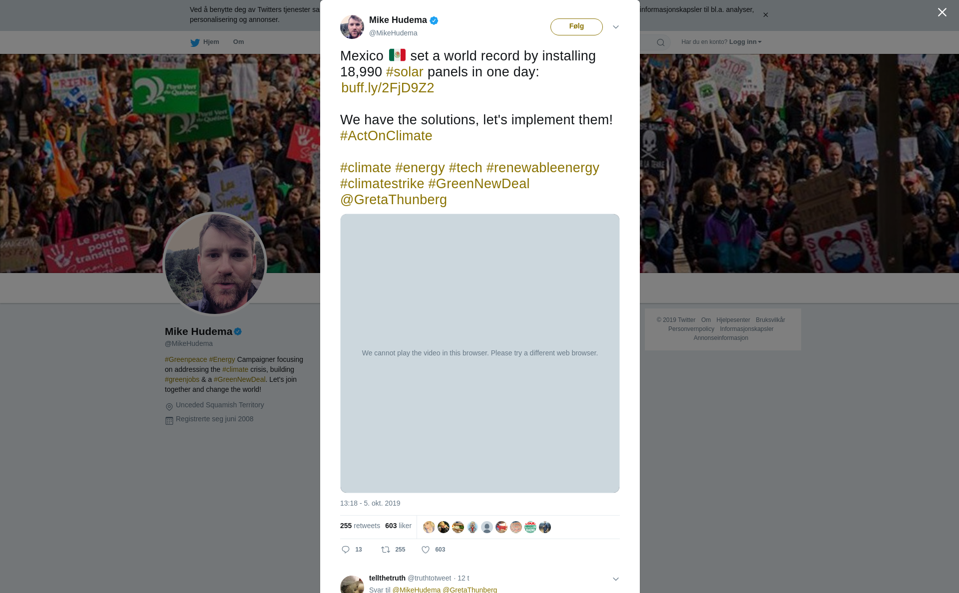 RT @MikeHudema: Mexico 🇲🇽 set a world record by installing 18,990 #solar panels in one day: https://t.co/Wmbu1J6EVg We have the solutions,…