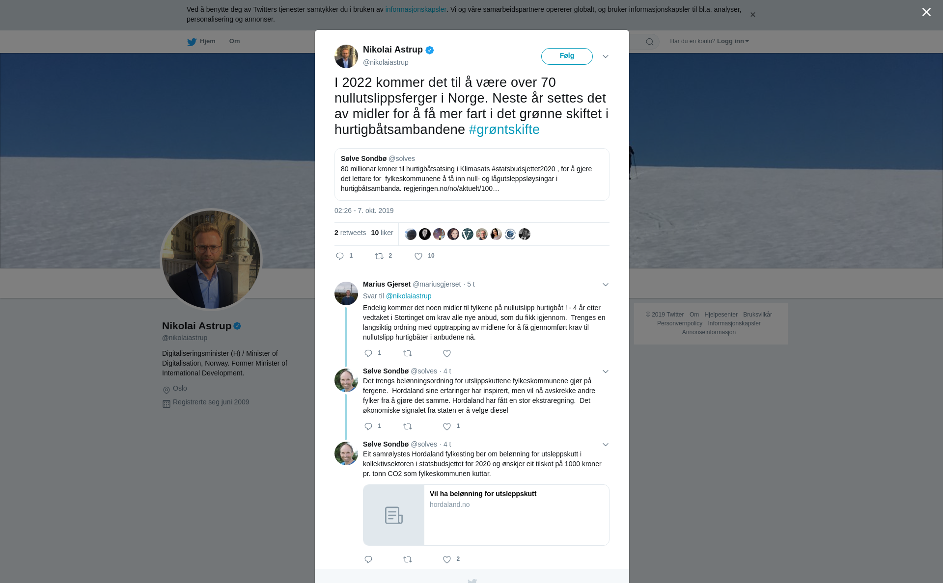 RT @nikolaiastrup: I 2022 kommer det til å være over 70 nullutslippsferger i Norge. Neste år settes det av midler for å få mer fart i det grønne skiftet i hurtigbåtsambandene #grøntskifte https://t.co/o6j1kHyX03