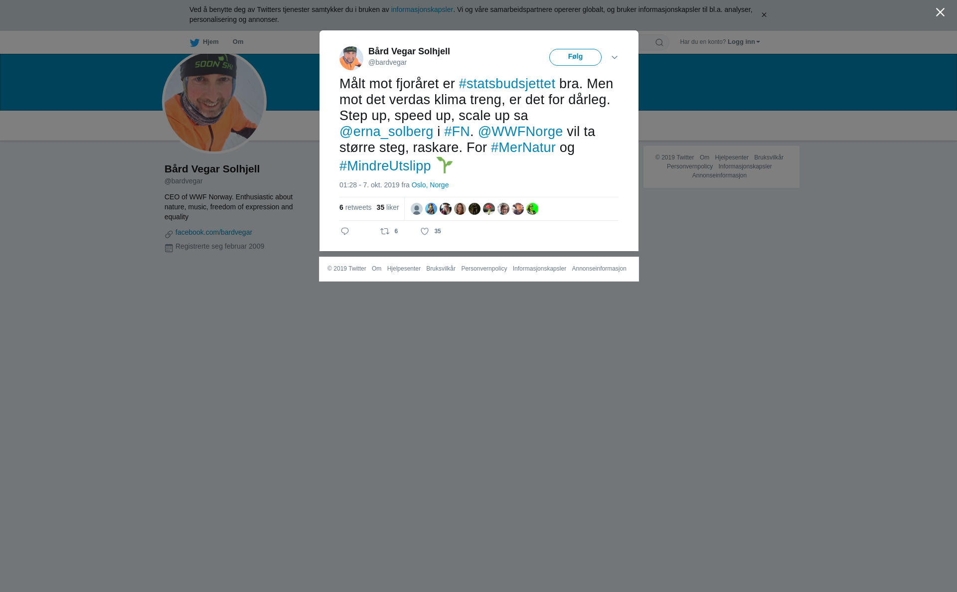 RT @bardvegar: Målt mot fjoråret er #statsbudsjettet bra. Men mot det verdas klima treng, er det for dårleg. Step up, speed up, scale up sa @erna_solberg i #FN. @WWFNorge vil ta større steg, raskare. For #MerNatur og #MindreUtslipp 🌱
