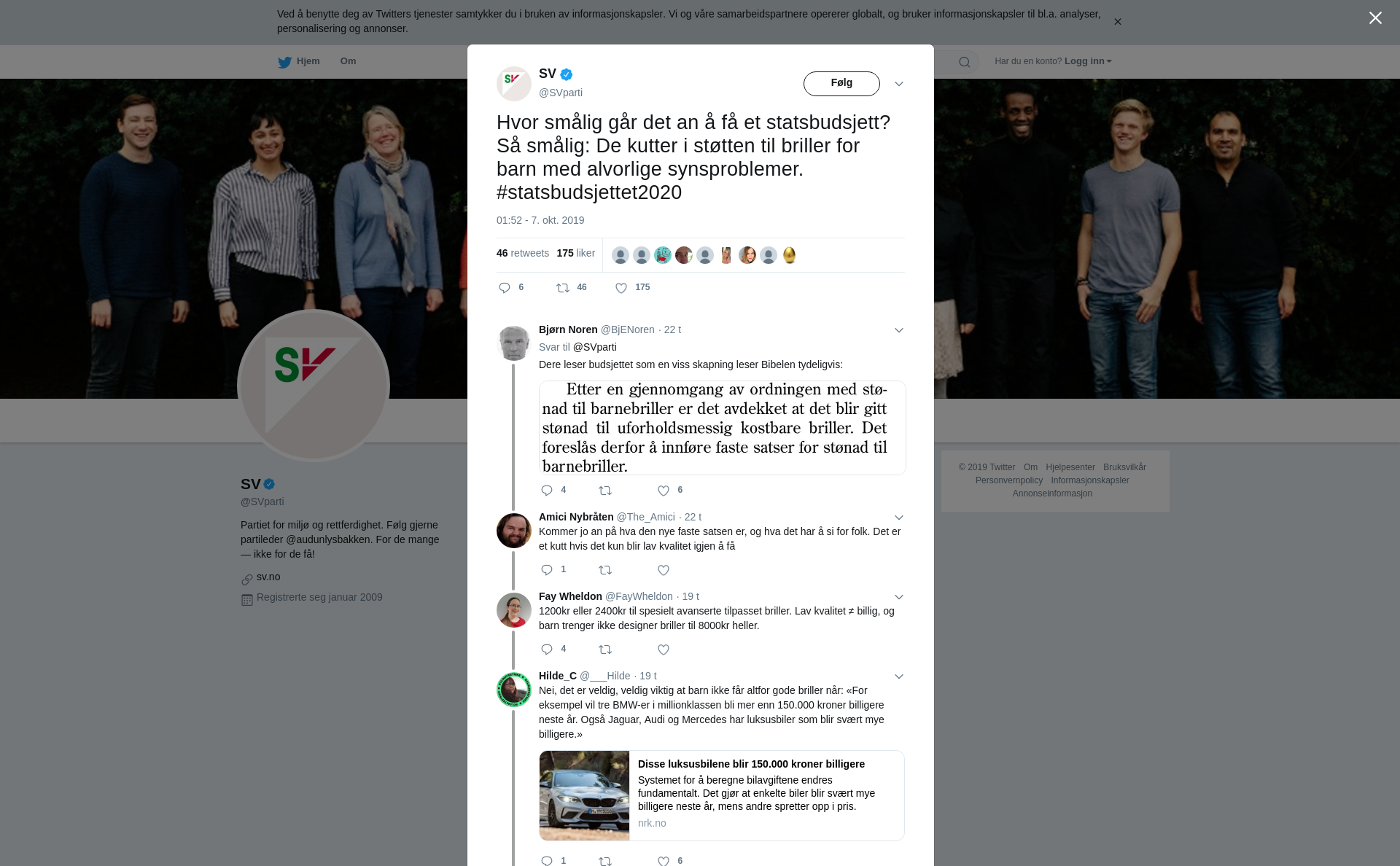 RT @SVparti: Hvor smålig går det an å få et statsbudsjett? Så smålig: De kutter i støtten til briller for barn med alvorlige synsproblemer. #statsbudsjettet2020