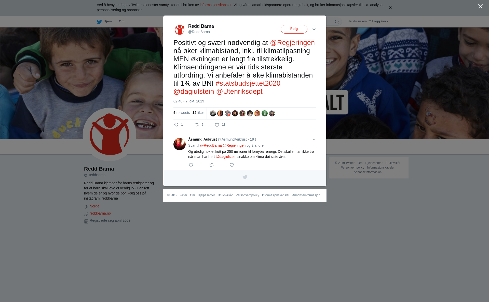 RT @ReddBarna: Positivt og svært nødvendig at @Regjeringen nå øker klimabistand, inkl. til klimatilpasning MEN økningen er langt fra tilstrekkelig. Klimaendringene er vår tids største utfordring. Vi anbefaler å øke klimabistanden til 1% av BNI #statsbudsjettet2020 @dagiulstein @Utenriksdept