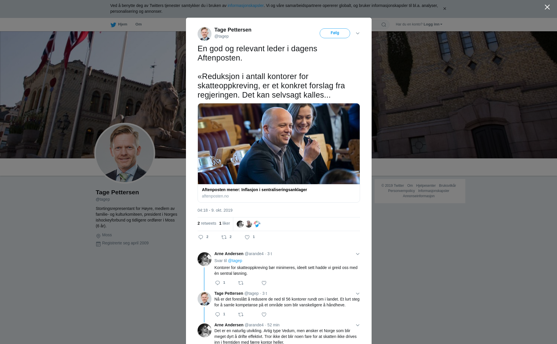 En god og relevant leder i dagens Aftenposten. «Reduksjon i antall kontorer for skatteoppkreving, er et konkret forslag fra regjeringen. Det kan selvsagt kalles... https://t.co/dQQfmYh4au