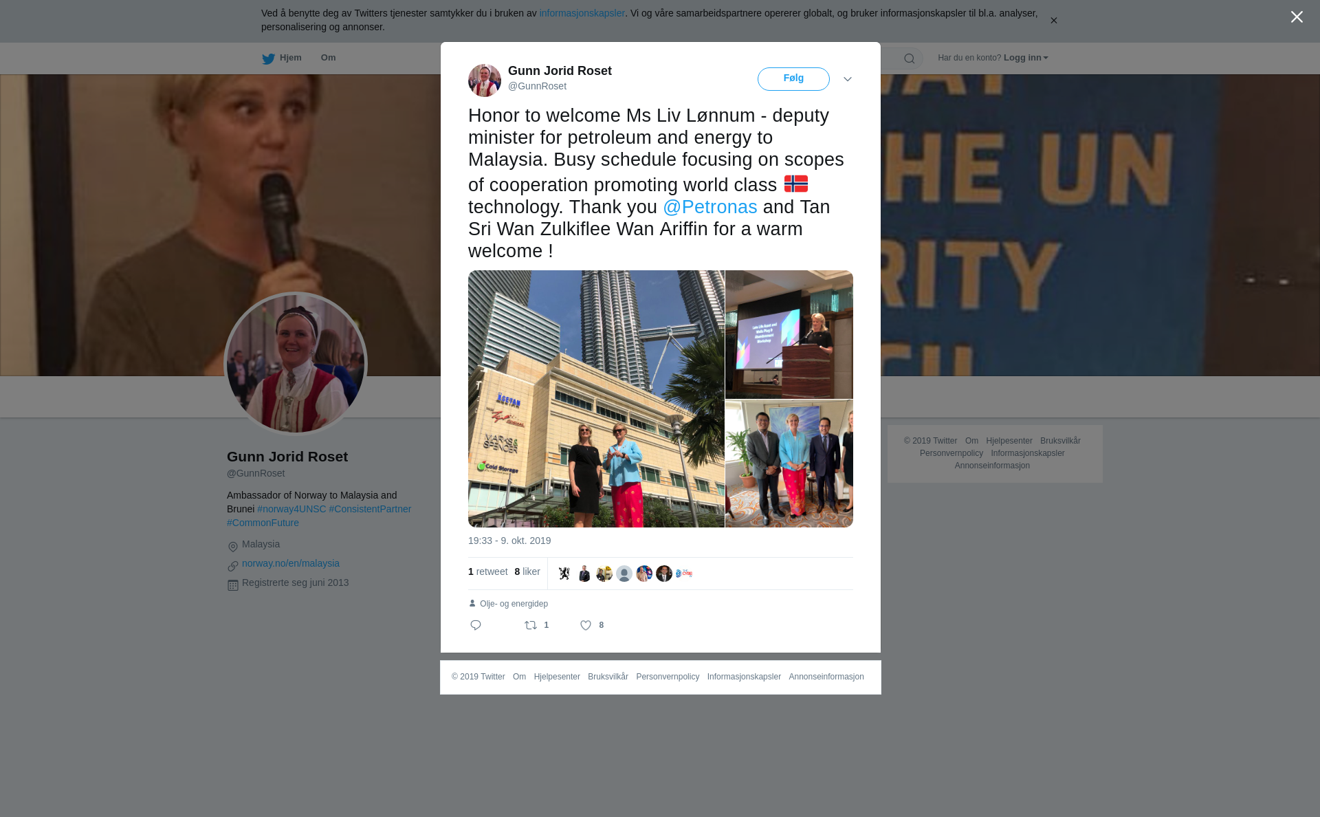 RT @GunnRoset: Honor to welcome Ms Liv Lønnum - deputy minister for petroleum and energy to Malaysia. Busy schedule focusing on scopes of cooperation promoting world class 🇳🇴 technology. Thank you @Petronas and Tan Sri Wan Zulkiflee Wan Ariffin for a warm welcome ! https://t.co/siZoeNT8gZ