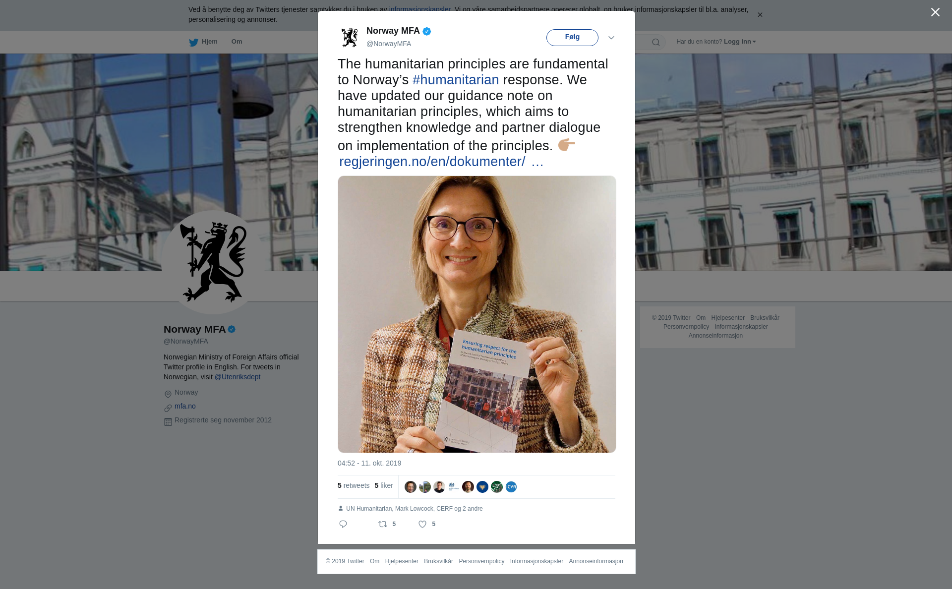 As part of its work to ensure that the humanitarian principles are respected in the field, the Ministry of Foreign Affairs has drawn up a guidance note on this issue, in consultation with a number of the organisations that receive funding from Norway. ...