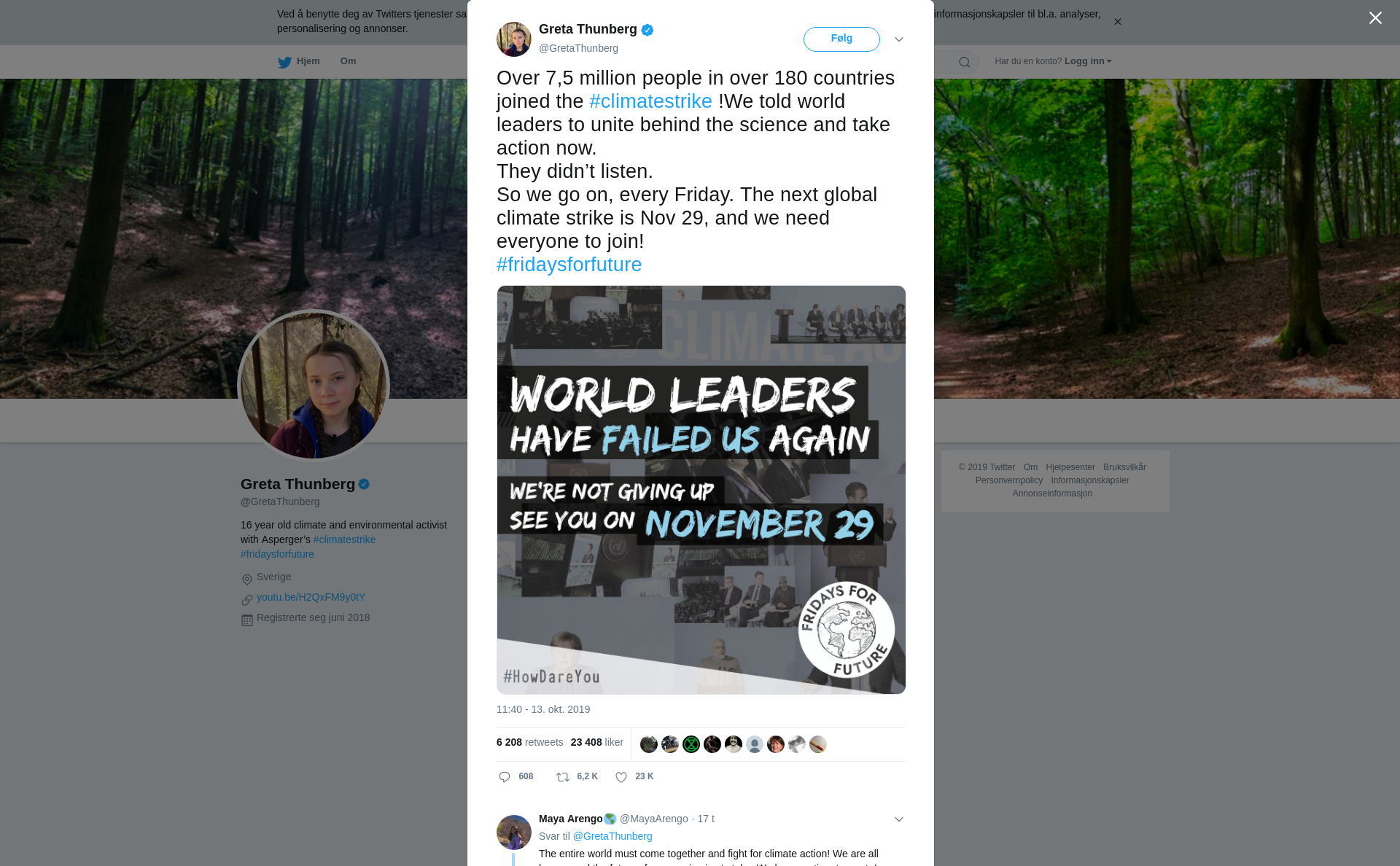 RT @GretaThunberg: Over 7,5 million people in over 180 countries joined the #climatestrike !We told world leaders to unite behind the science and take action now.