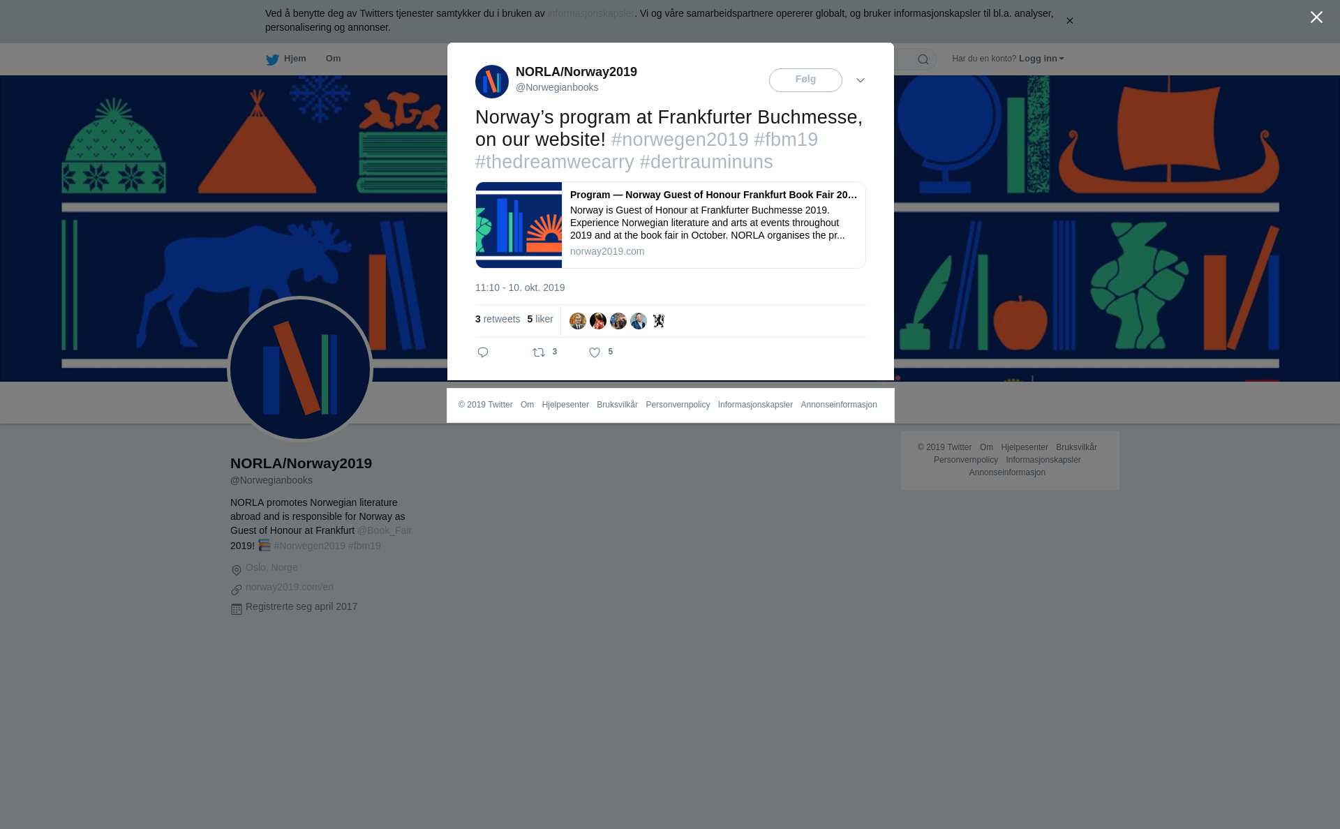 RT @Norwegianbooks: Norway’s program at Frankfurter Buchmesse, on our website! #norwegen2019 #fbm19 #thedreamwecarry #dertrauminuns https://t.co/8UtcubhVd7