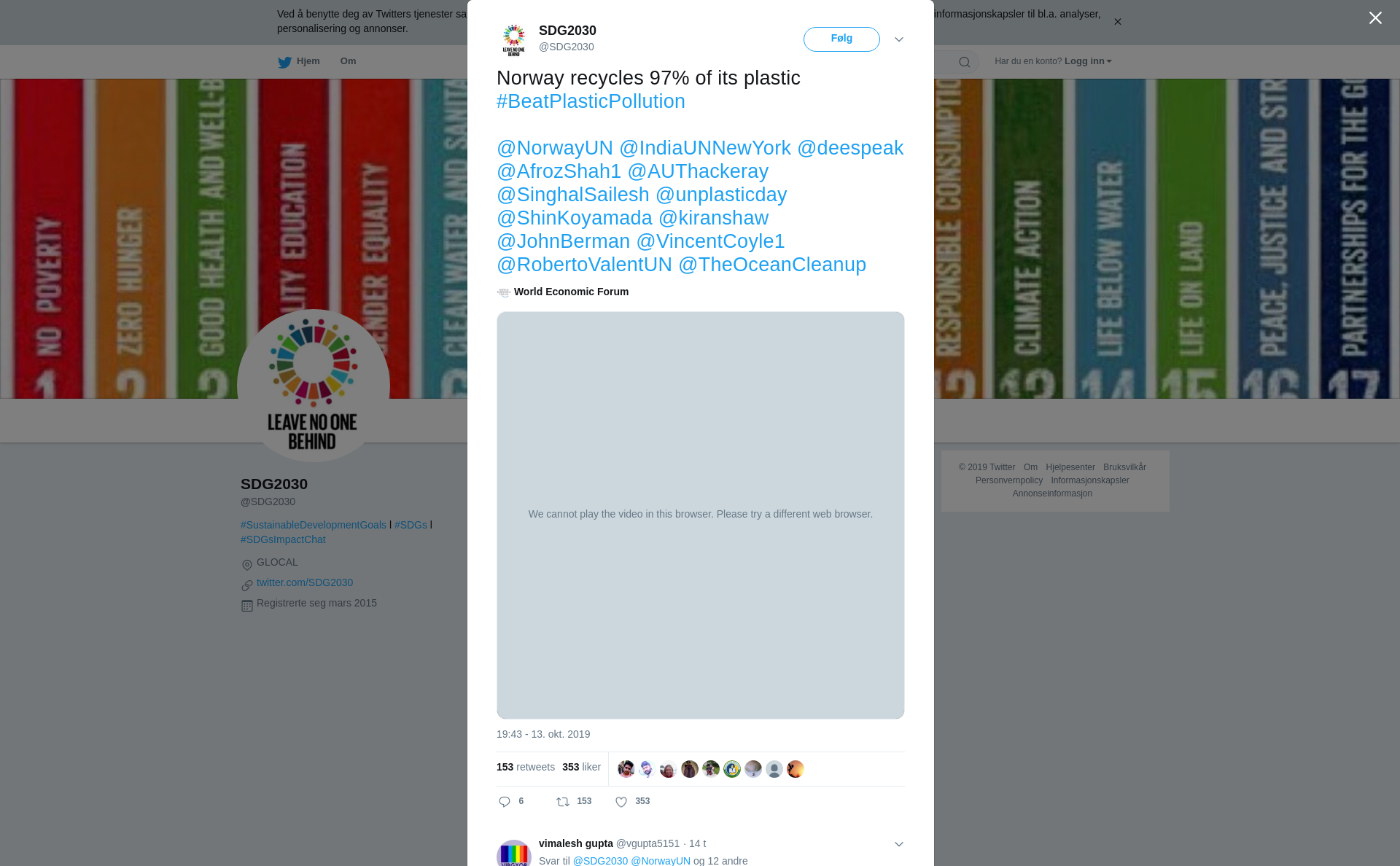 RT @SDG2030: Norway recycles 97% of its plastic #BeatPlasticPollution @NorwayUN @IndiaUNNewYork @deespeak @AfrozShah1 @AUThackeray @Singh…