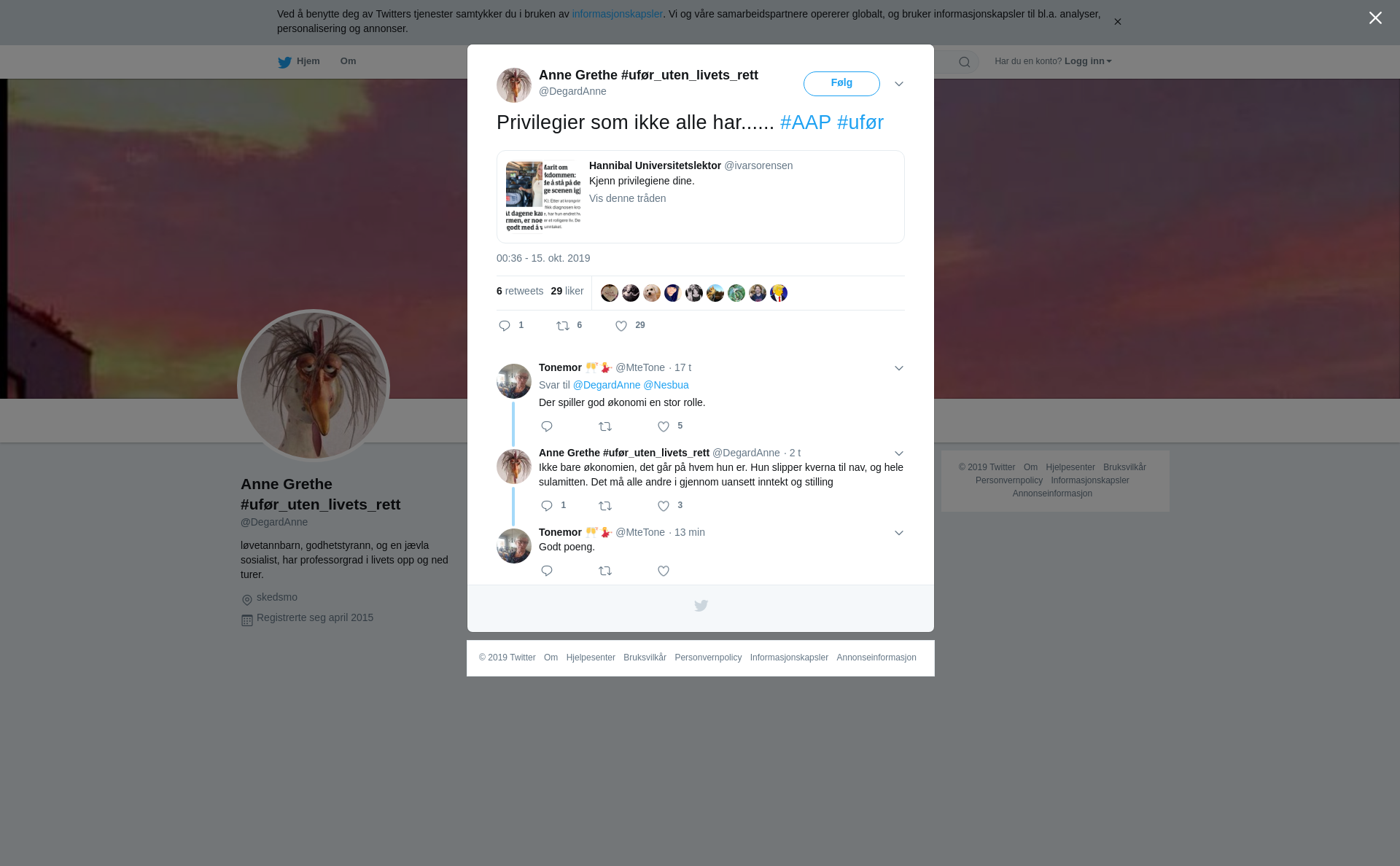RT @DegardAnne: Privilegier som ikke alle har...... #AAP #ufør https://t.co/HhhukoY84R
