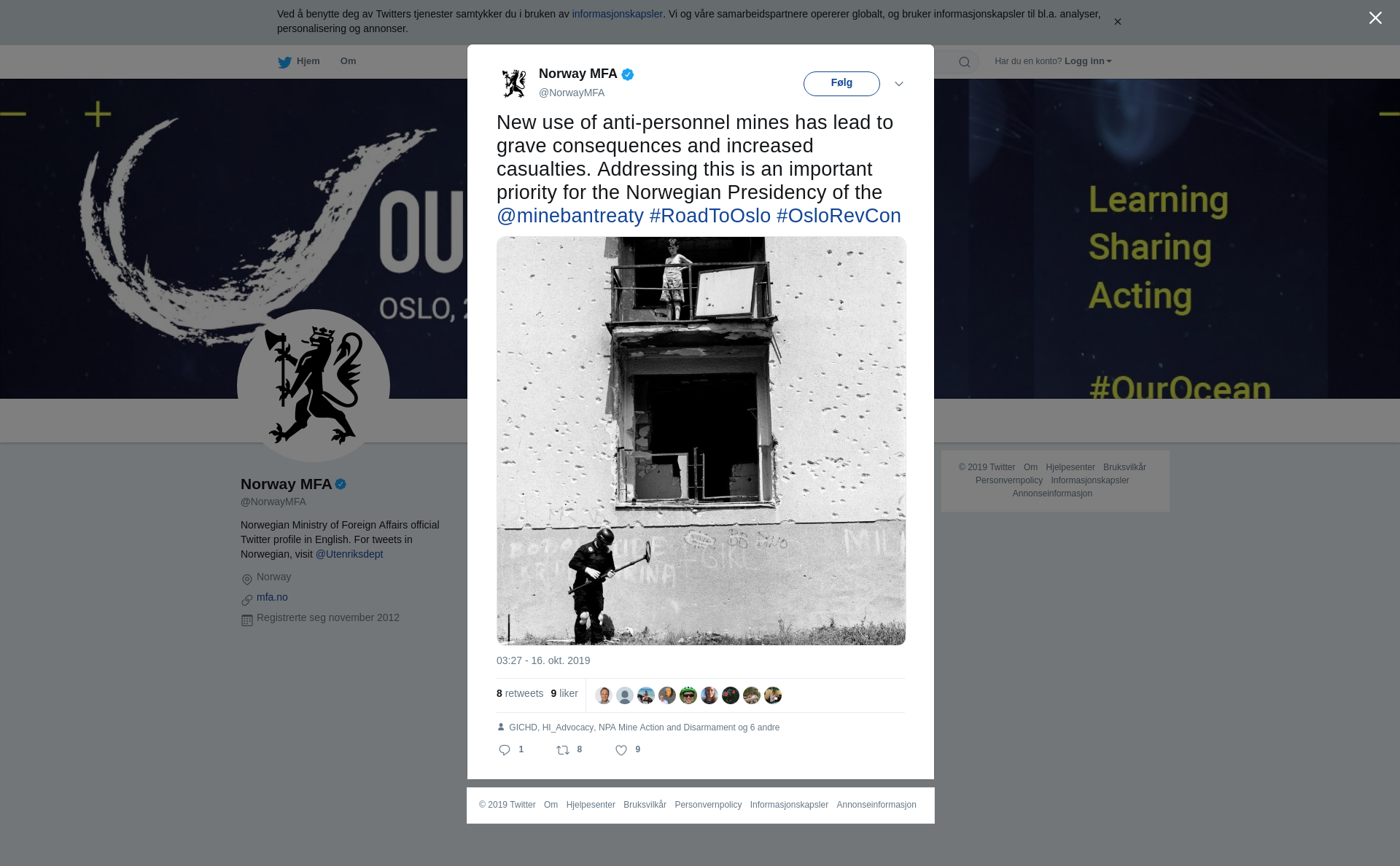New use of anti-personnel mines has lead to grave consequences and increased casualties. Addressing this is an important priority for the Norwegian Presidency of the @minebantreaty #RoadToOslo #OsloRevCon https://t.co/73NNqH5fkF