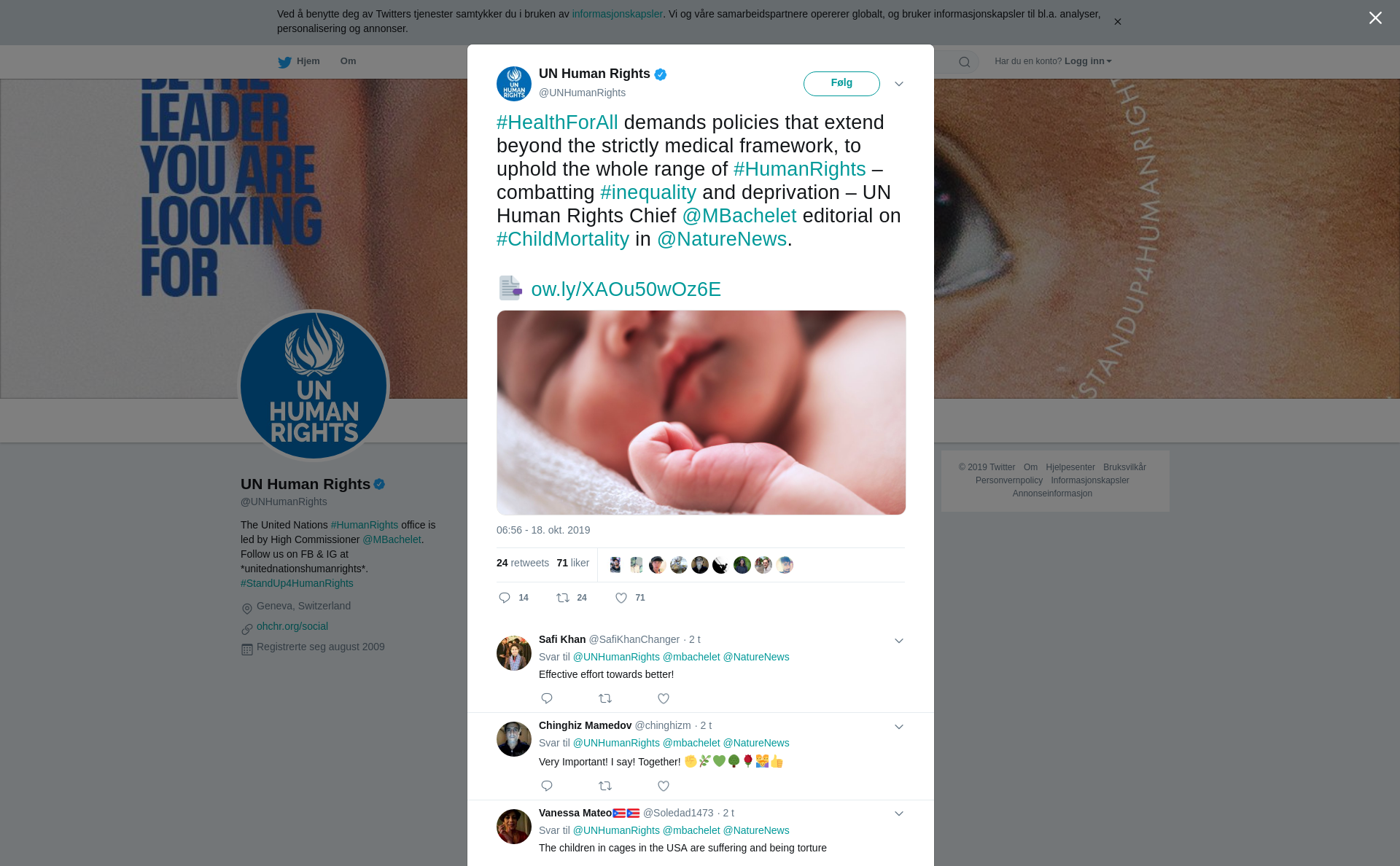 RT @UNHumanRights: #HealthForAll demands policies that extend beyond the strictly medical framework, to uphold the whole range of #HumanRights – combatting #inequality and deprivation – UN Human Rights Chief @MBachelet editorial on #ChildMortality in @NatureNews.