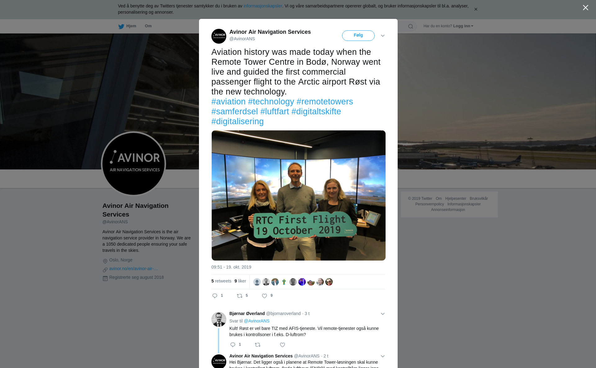RT @AvinorANS: Aviation history was made today when the Remote Tower Centre in Bodø, Norway went live and guided the first commercial passenger flight to the Arctic airport Røst via the new technology.