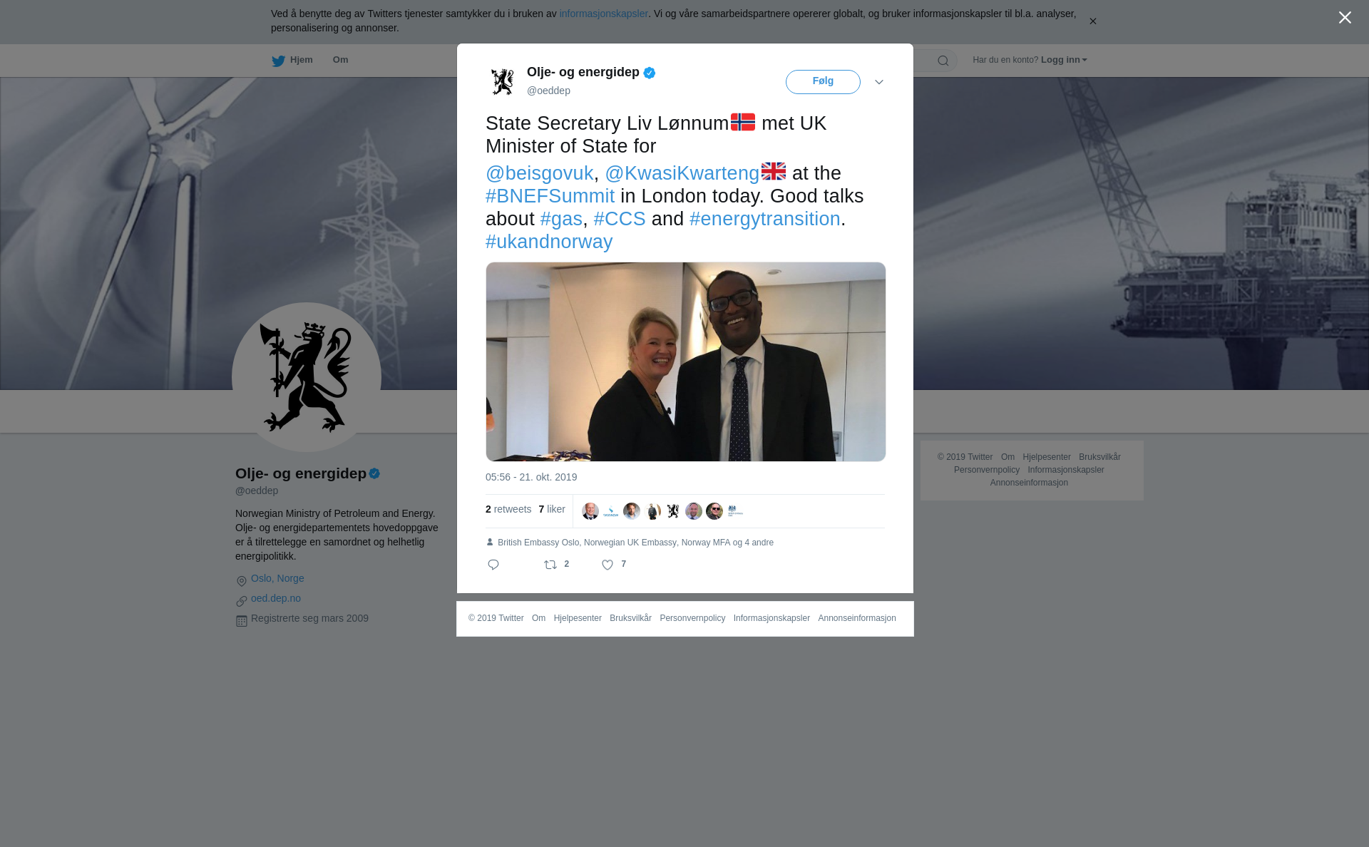 @beisgovuk, @KwasiKwarteng🇬🇧 at the #BNEFSummit in London today. Good talks about #gas, #CCS and #energytransition. #ukandnorway https://t.co/aZb9mOdzTY