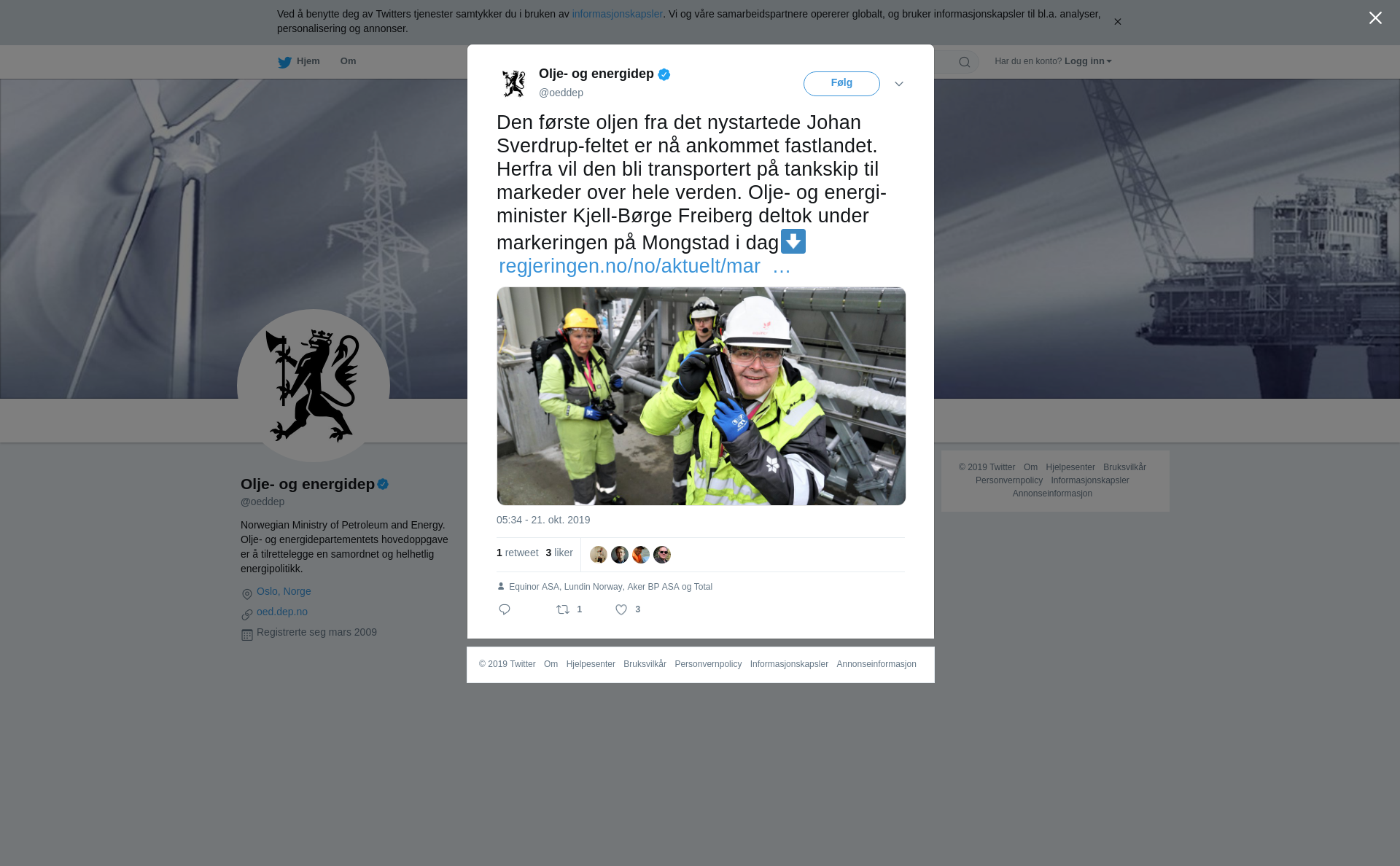 Den første oljen fra det nystartede Johan Sverdrup-feltet er nå ankommet fastlandet. Herfra vil den bli transportert på tankskip til markeder over hele verden. Olje- og energi-minister Kjell-Børge Freiberg deltok under markeringen på Mongstad i dag⬇️