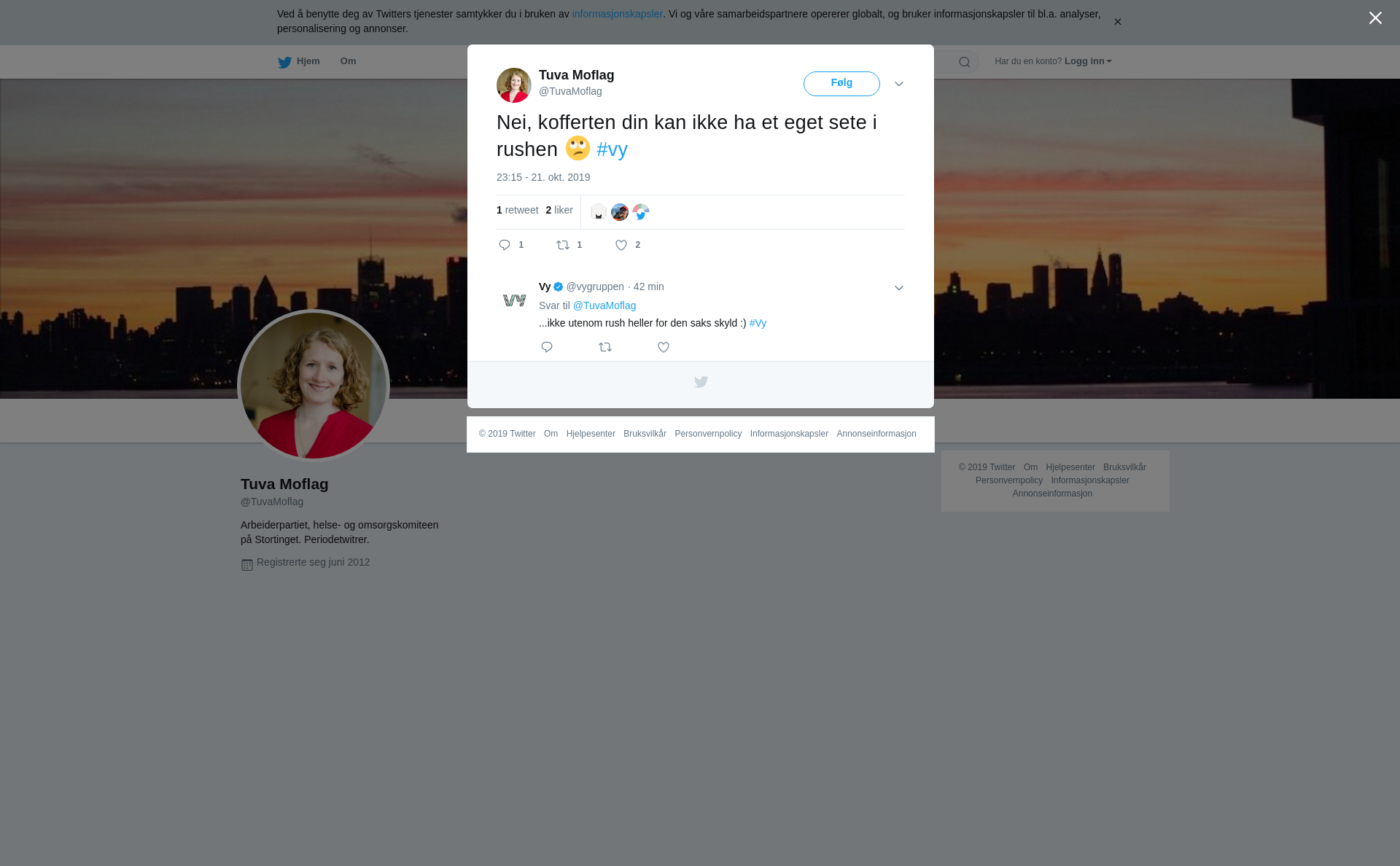 Nei, kofferten din kan ikke ha et eget sete i rushen 🙄 #vy