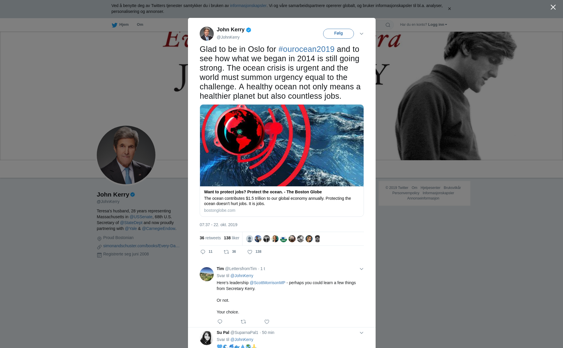 RT @JohnKerry: Glad to be in Oslo for #ourocean2019 and to see how what we began in 2014 is still going strong. The ocean crisis is urgent and the world must summon urgency equal to the challenge. A healthy ocean not only means a healthier planet but also countless jobs. https://t.co/No2EZ8h139