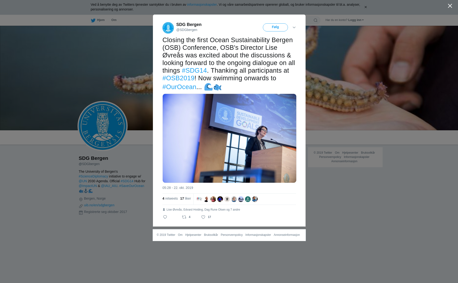 RT @SDGbergen: Closing the first Ocean Sustainability Bergen (OSB) Conference, OSB's Director Lise Øvreås was excited about the discussions & looking forward to the ongoing dialogue on all things #SDG14. Thanking all participants at #OSB2019! Now swimming onwards to #OurOcean... 🌊🐟 https://t.co/NM6vQxAmJc