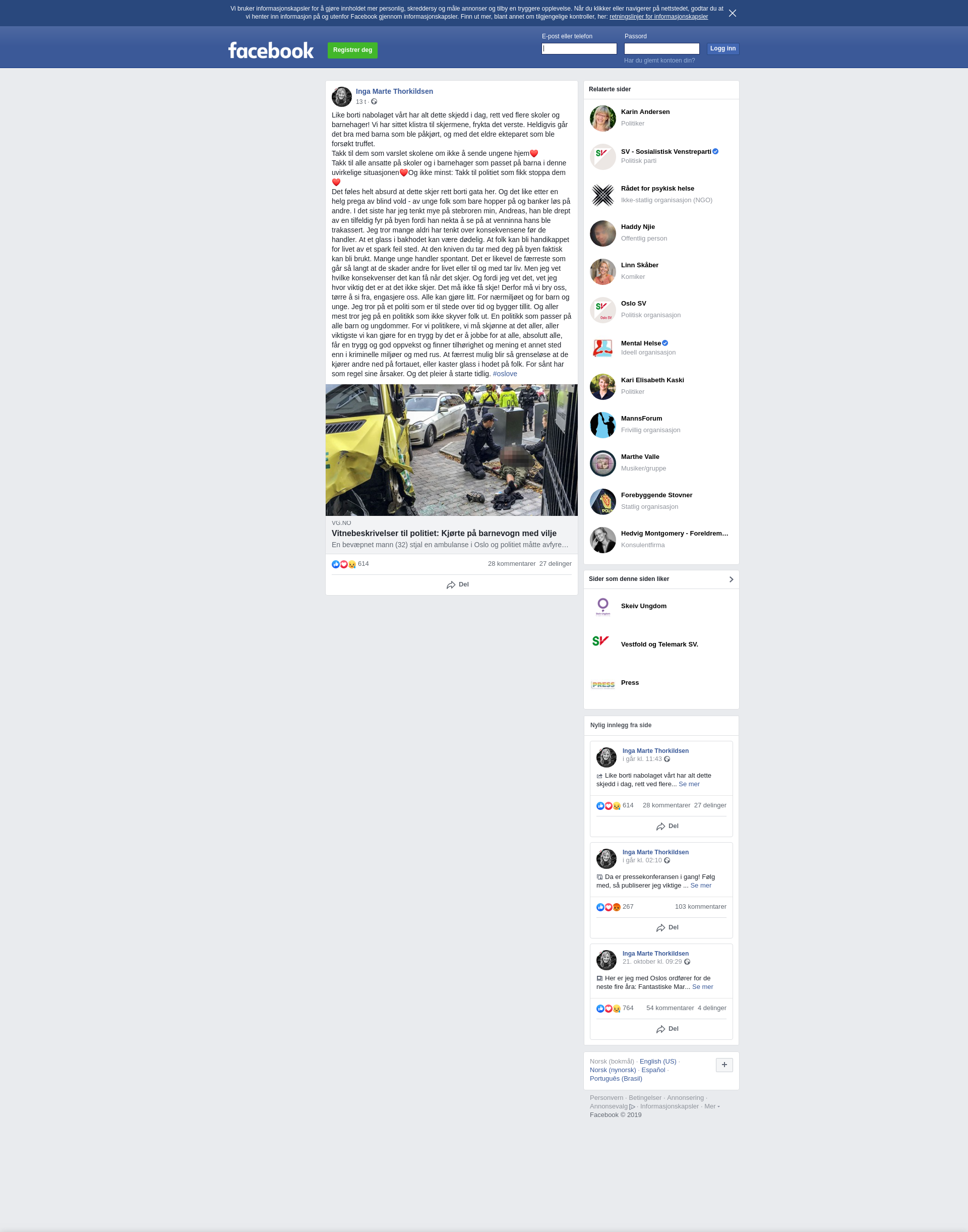 Det føles helt absurd at dette skjer rett borti gata her. Og det like etter en helg prega av blind vold - av unge folk som bare hopper på og banker løs på andre. I det siste har jeg tenkt mye på stebroren min, Andreas, han ble drept av en tilfeldig fyr på byen fordi han nekta å se på at venninna hans ble trakassert. Jeg tror mange aldri har tenkt over konsekvensene før de handler. At et glass i bakhodet kan være dødelig. At folk kan bli handikappet for livet av et spark feil sted. At den kniven du tar med deg på byen faktisk kan bli brukt. Mange unge handler spontant. Det er likevel de færreste som går så langt at de skader andre for livet eller til og med tar liv. Men jeg vet hvilke konsekvenser det kan få når det skjer. Og fordi jeg vet det, vet jeg hvor viktig det er at det ikke skjer. Det må ikke få skje! Derfor må vi bry oss, tørre å si fra, engasjere oss. Alle kan gjøre litt. For nærmiljøet og for barn og unge. Jeg tror på et politi som er til stede over tid og bygger tillit. Og aller mest tror jeg på en politikk som ikke skyver folk ut. En politikk som passer på alle barn og ungdommer. For vi politikere, vi må skjønne at det aller, aller viktigste vi kan gjøre for en trygg by det er å jobbe for at alle, absolutt alle, får en trygg og god oppvekst og finner tilhørighet og mening et annet sted enn i kriminelle miljøer og med rus. At færrest mulig blir så grenseløse at de kjører andre ned på fortauet, eller kaster glass i hodet på folk. For sånt har som regel sine årsaker. Og det pleier å starte tidlig. #oslove