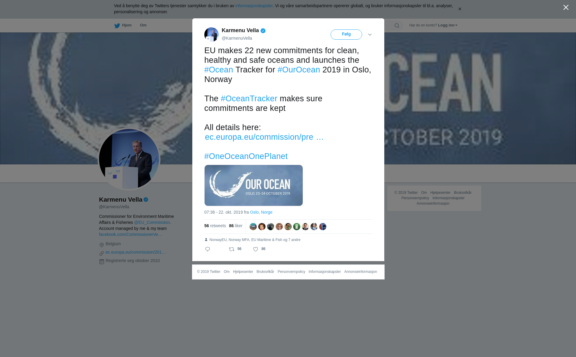 RT @KarmenuVella: EU makes 22 new commitments for clean, healthy and safe oceans and launches the #Ocean Tracker for #OurOcean 2019 in Oslo, Norway