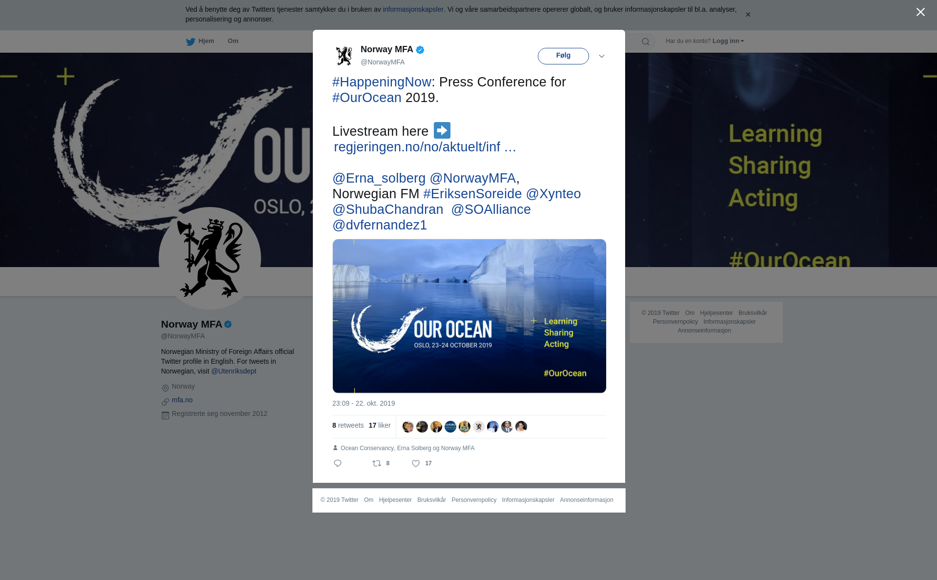 Media inviteres til pressekonferanse i anledning den internasjonale havkonferansen Our Ocean onsdag 23. oktober, som arrangeres av Utenriksdepartementet.