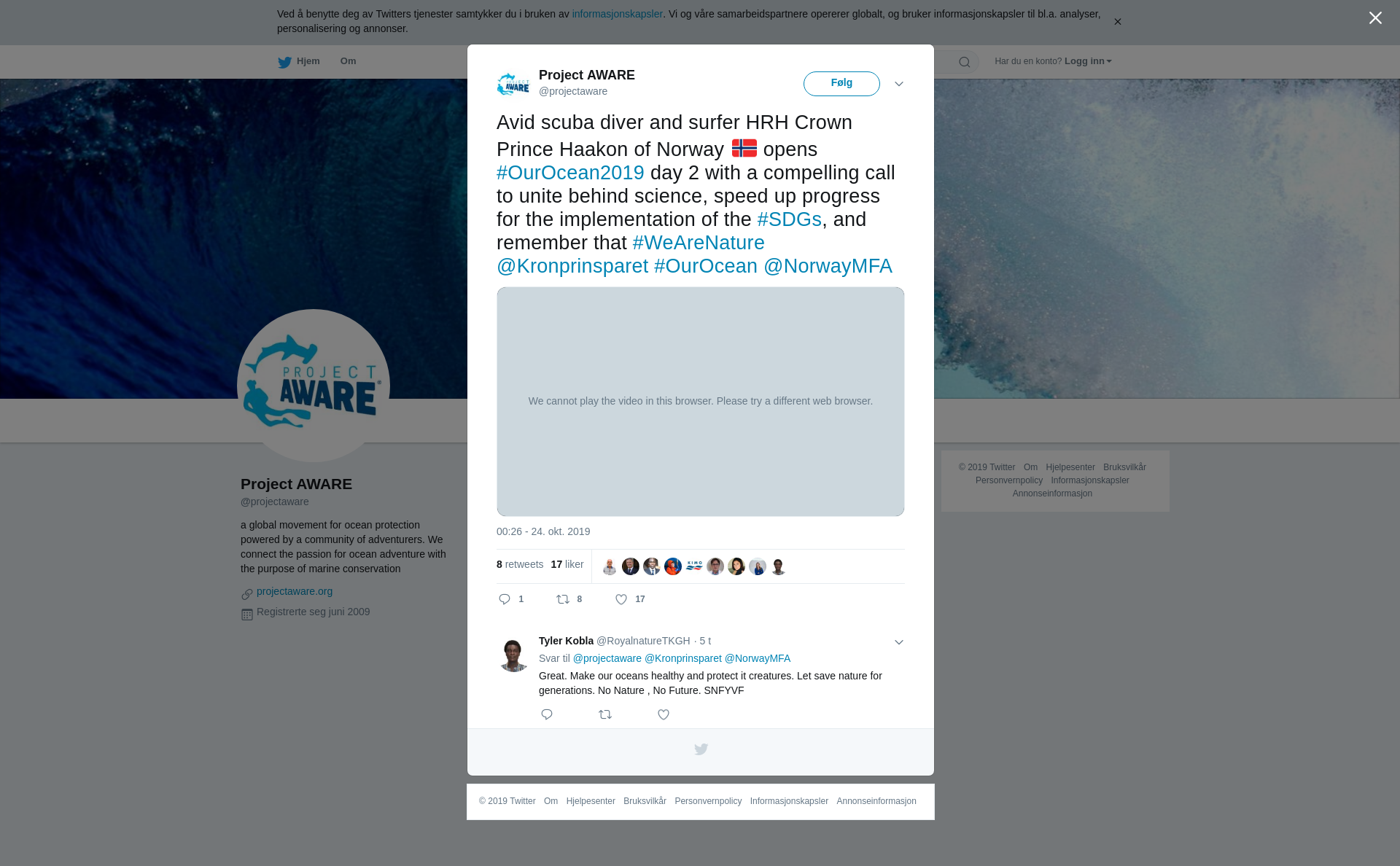 RT @projectaware: Avid scuba diver and surfer HRH Crown Prince Haakon of Norway 🇳🇴 opens #OurOcean2019 day 2 with a compelling call to unite behind science, speed up progress for the implementation of the #SDGs, and remember that #WeAreNature @Kronprinsparet #OurOcean @NorwayMFA https://t.co/4mSOHwvjaF