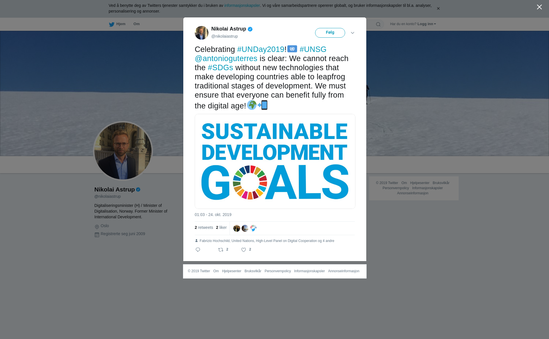 Celebrating #UNDay2019!🇺🇳 #UNSG @antonioguterres is clear: We cannot reach the #SDGs without new technologies that make developing countries able to leapfrog traditional stages of development. We must ensure that everyone can benefit fully from the digital age!🌍📲 https://t.co/tqX2JG4hwi