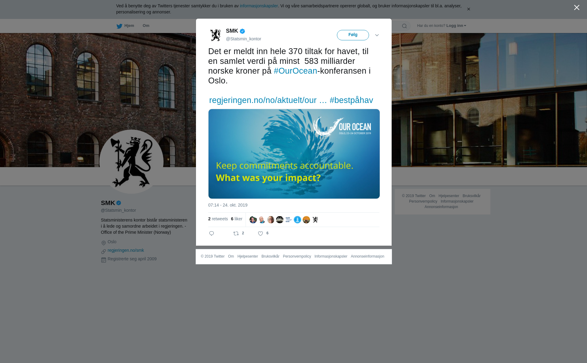 - Jeg er svært glad for det store engasjementet som deltakerne på Our Ocean-konferansen har vist disse to dagene i Oslo. Det er meldt inn hele 370 tiltak for havet, til en samlet verdi på minst 583 milliarder norske kroner, sier utenriksminister Ine E...