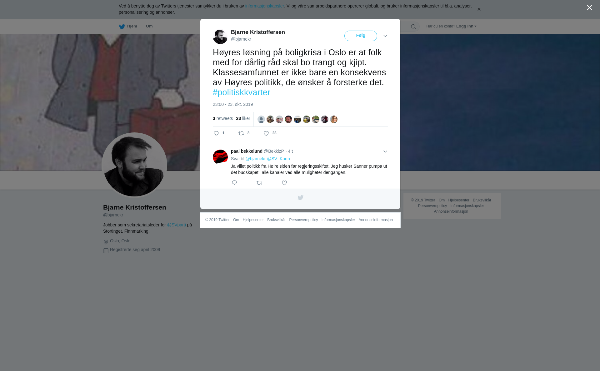 RT @bjarnekr: Høyres løsning på boligkrisa i Oslo er at folk med for dårlig råd skal bo trangt og kjipt. Klassesamfunnet er ikke bare en konsekvens av Høyres politikk, de ønsker å forsterke det. #politiskkvarter
