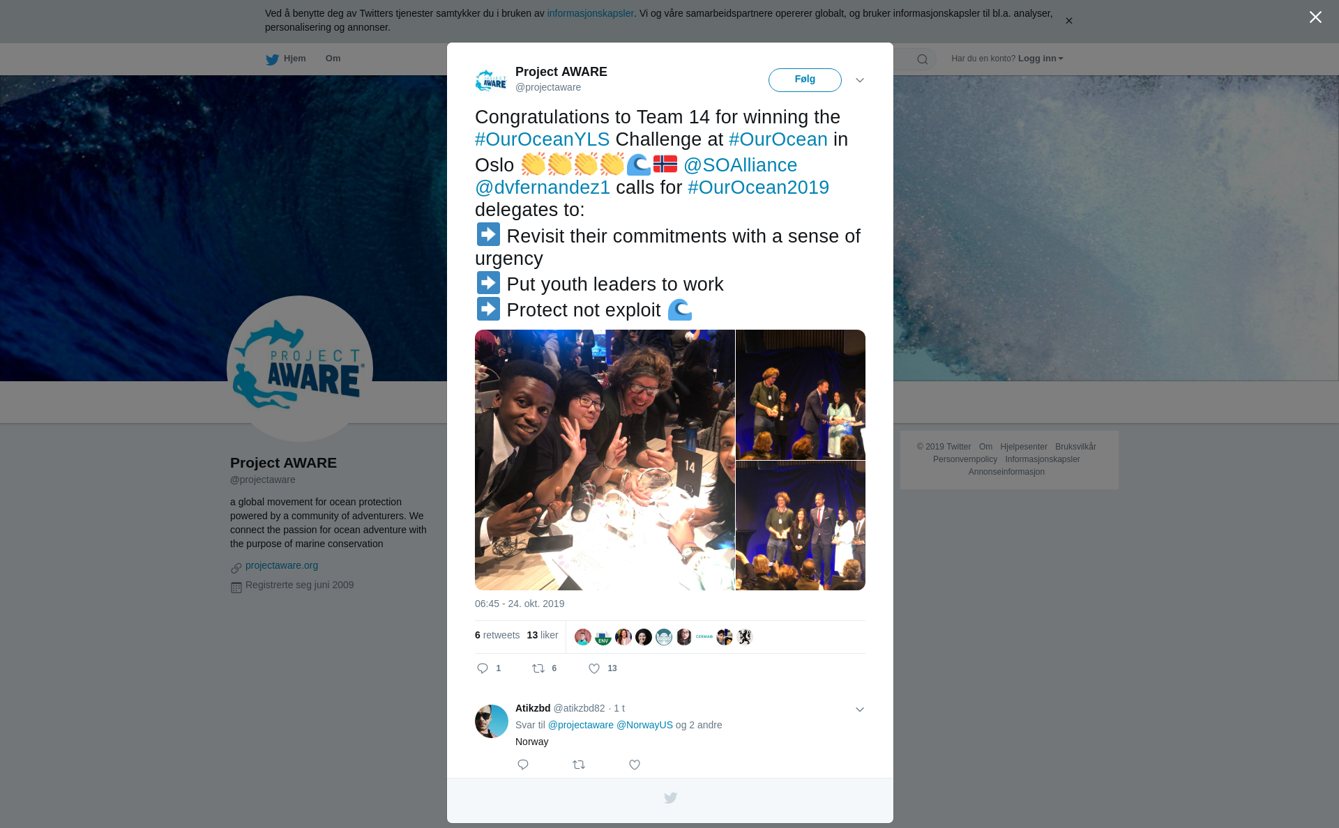 RT @projectaware: Congratulations to Team 14 for winning the #OurOceanYLS Challenge at #OurOcean in Oslo 👏👏👏👏🌊🇳🇴 @SOAlliance @dvfernandez1 calls for #OurOcean2019 delegates to: