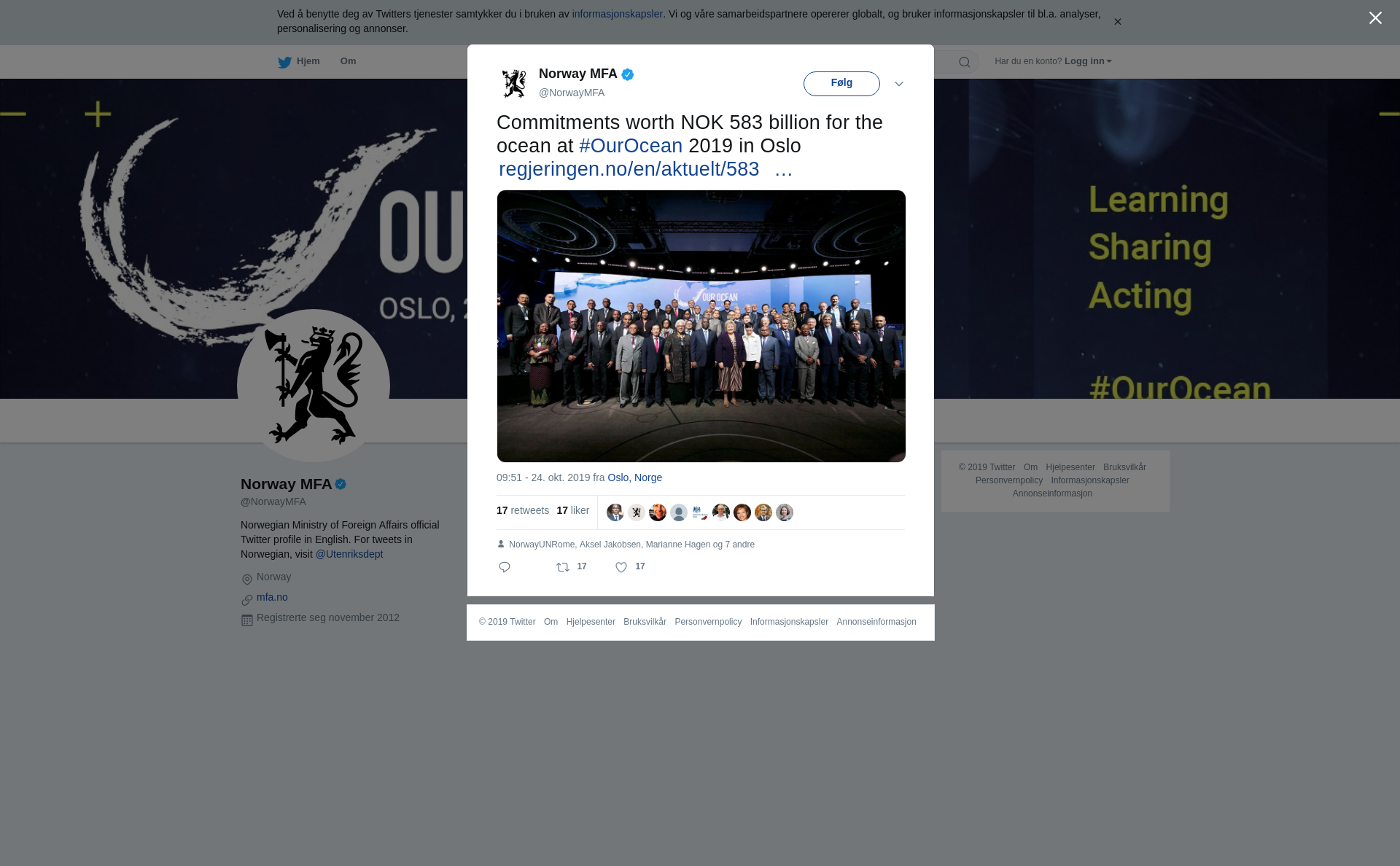 “I am very pleased with the great engagement shown at the Our Ocean conference these two days in Oslo. 370 commitments have been made, at a total value of at least NOK 583 billion (63 billion dollars),” said Foreign Minister Ine Eriksen Søreide.