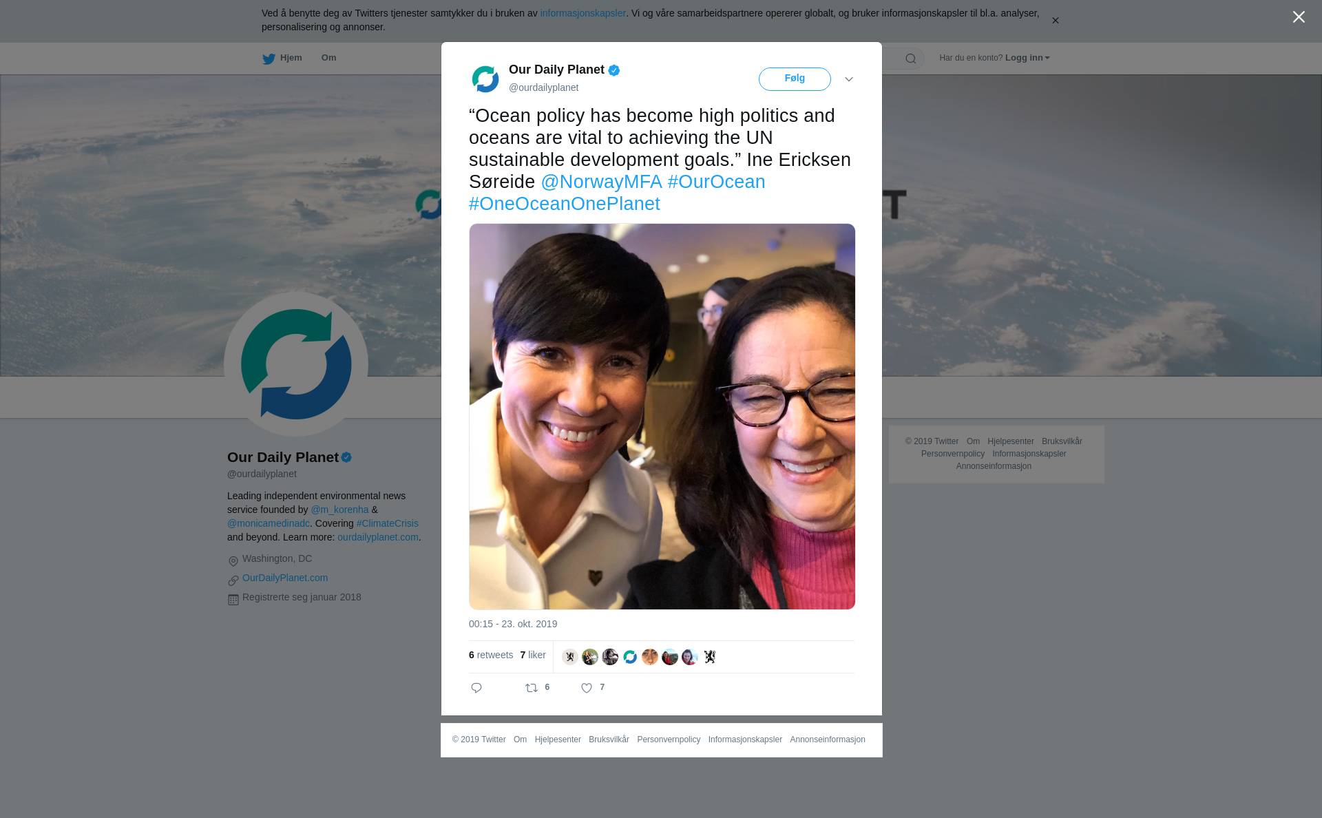 RT @ourdailyplanet: “Ocean policy has become high politics and oceans are vital to achieving the UN sustainable development goals.” Ine Ericksen Søreide @NorwayMFA #OurOcean #OneOceanOnePlanet https://t.co/Dm3XAcqNmG