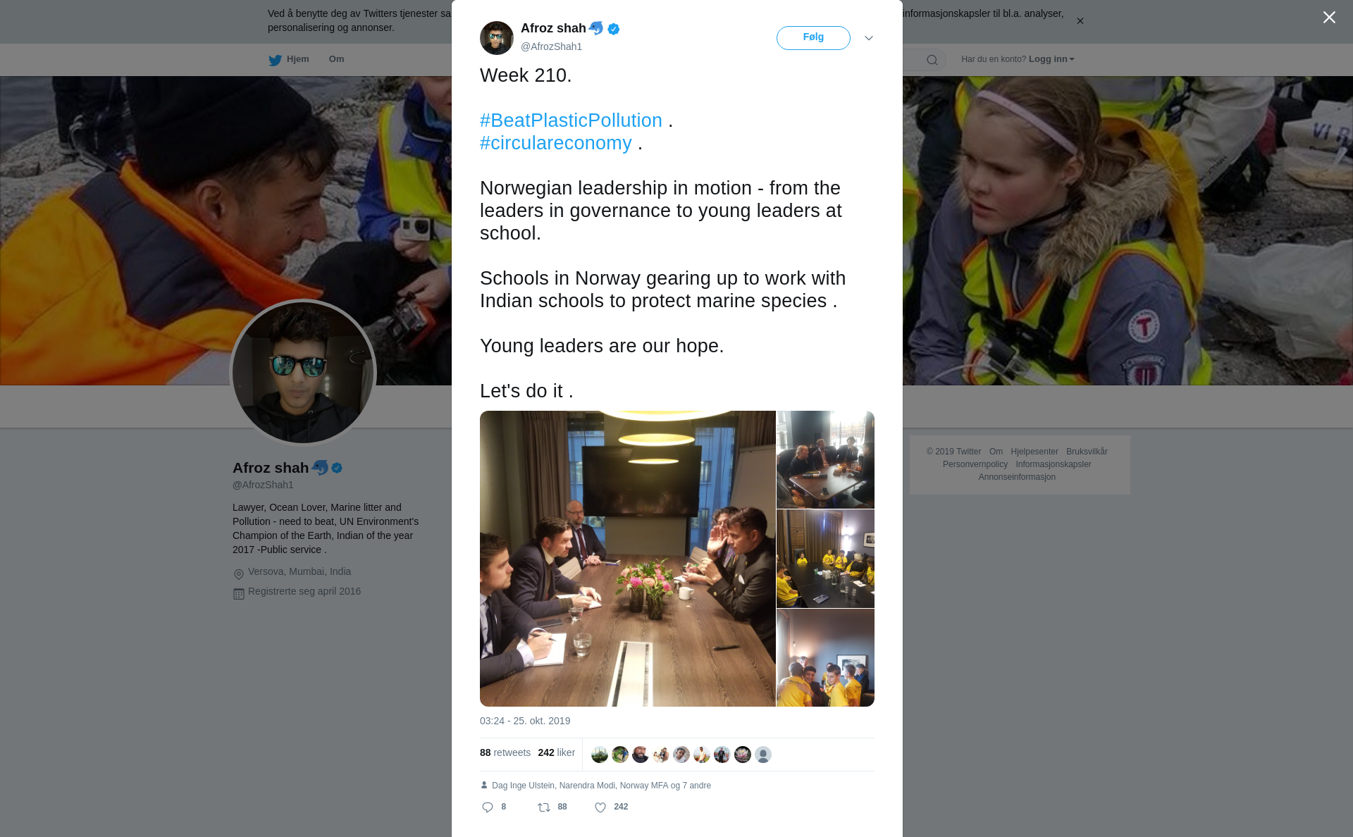 RT @AfrozShah1: Week 210. #BeatPlasticPollution . #circulareconomy . Norwegian leadership in motion - from the leaders in governance to y…