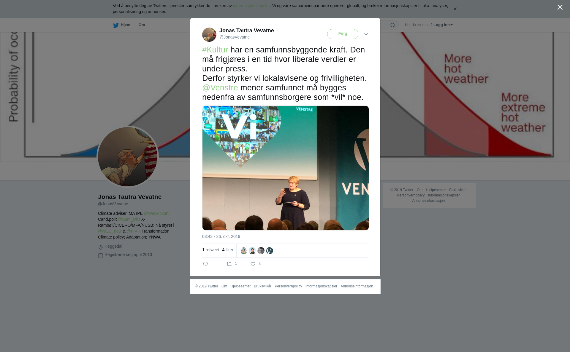 RT @JonasVevatne: #Kultur har en samfunnsbyggende kraft. Den må frigjøres i en tid hvor liberale verdier er under press. Derfor styrker vi…