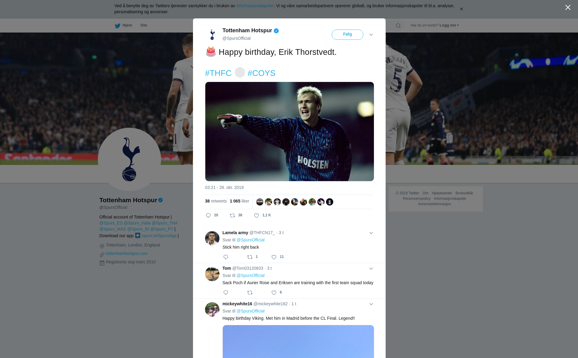 RT @SpursOfficial: 🎂 Happy birthday, Erik Thorstvedt. #THFC ⚪️ #COYS https://t.co/hgHztTLGUt