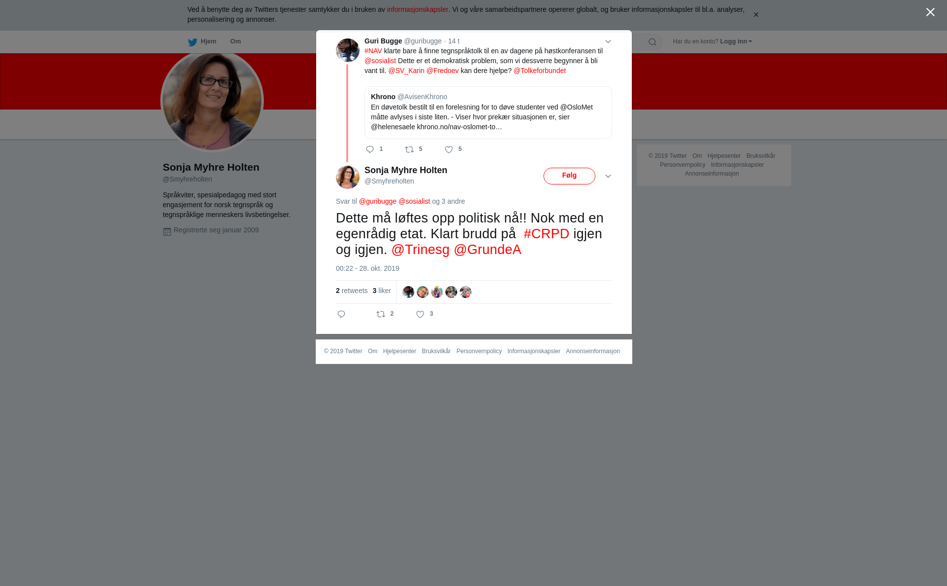 RT @Smyhreholten: @guribugge @sosialist @SV_Karin @Fredoev @Tolkeforbundet Dette må løftes opp politisk nå!! Nok med en egenrådig etat. Klart brudd på #CRPD igjen og igjen. @Trinesg @GrundeA