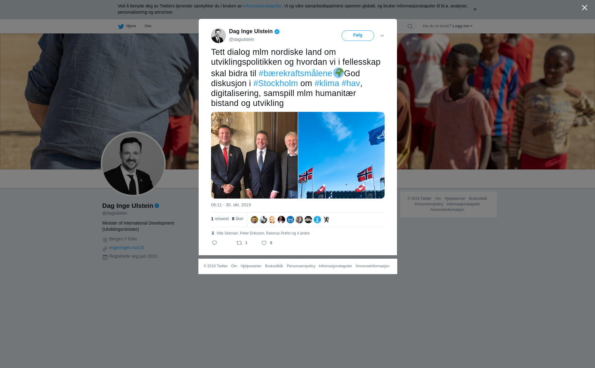 Tett dialog mlm nordiske land om utviklingspolitikken og hvordan vi i fellesskap skal bidra til #bærekraftsmålene🌍God diskusjon i #Stockholm om #klima #hav, digitalisering, samspill mlm humanitær bistand og utvikling https://t.co/AEVT5DKtb5