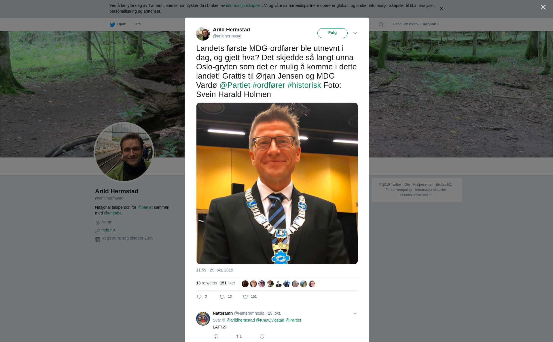 RT @arildhermstad: Landets første MDG-ordfører ble utnevnt i dag, og gjett hva? Det skjedde så langt unna Oslo-gryten som det er mulig å komme i dette landet! Grattis til Ørjan Jensen og MDG Vardø @Partiet #ordfører #historisk Foto: Svein Harald Holmen https://t.co/6V3Nfqg0QG