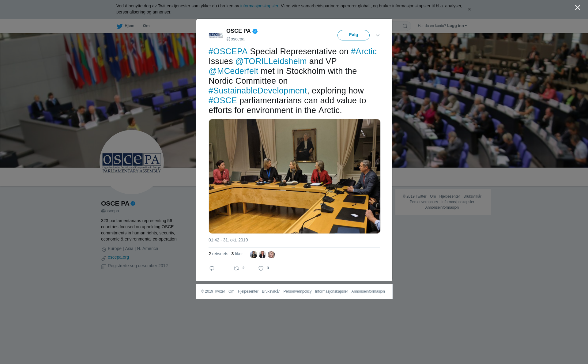RT @oscepa: #OSCEPA Special Representative on #Arctic Issues @TORILLeidsheim and VP @MCederfelt met in Stockholm with the Nordic Committee on #SustainableDevelopment, exploring how #OSCE parliamentarians can add value to efforts for environment in the Arctic. https://t.co/3veQNNaliR