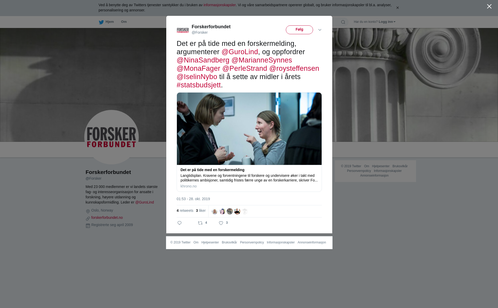 RT @Forsker: Det er på tide med en forskermelding, argumenterer @GuroLind, og oppfordrer @NinaSandberg @MarianneSynnes @MonaFager @PerleStrand @roysteffensen @IselinNybo til å sette av midler i årets #statsbudsjett.