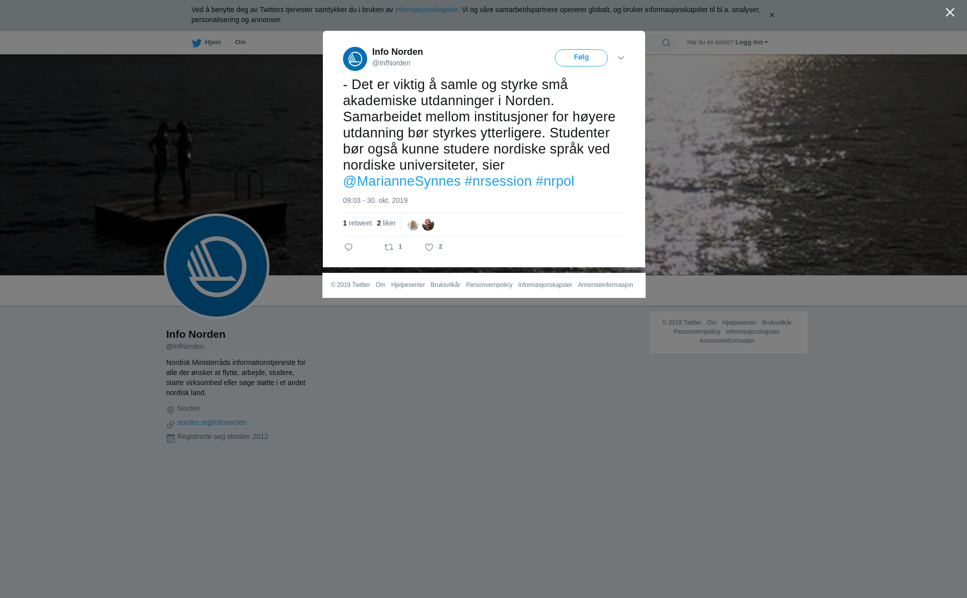 RT @InfNorden: - Det er viktig å samle og styrke små akademiske utdanninger i Norden. Samarbeidet mellom institusjoner for høyere utdanning bør styrkes ytterligere. Studenter bør også kunne studere nordiske språk ved nordiske universiteter, sier @MarianneSynnes #nrsession #nrpol