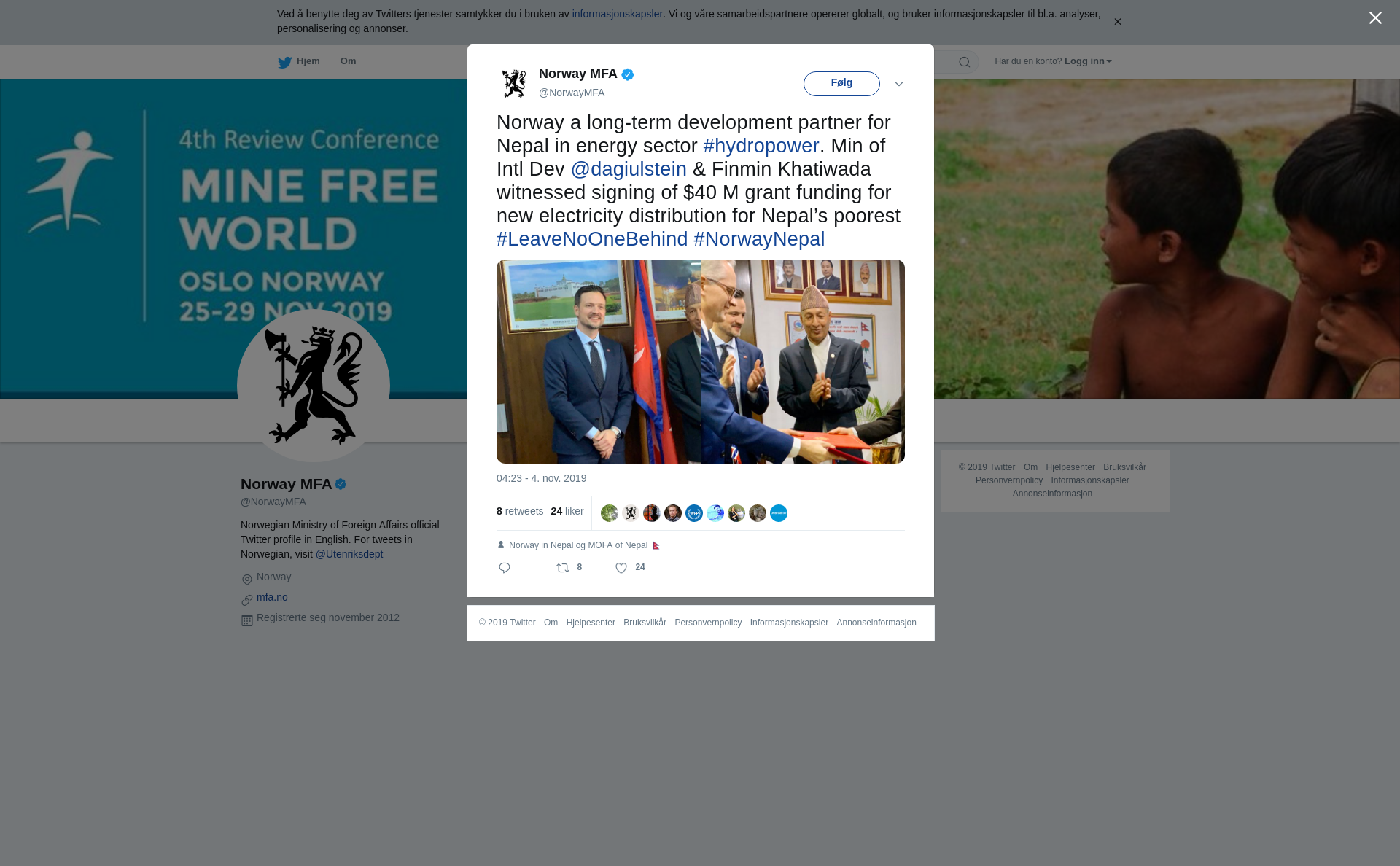 Norway a long-term development partner for Nepal in energy sector #hydropower. Min of Intl Dev @dagiulstein & Finmin Khatiwada witnessed signing of $40 M grant funding for new electricity distribution for Nepal’s poorest #LeaveNoOneBehind #NorwayNepal https://t.co/ed09Pf9nNR
