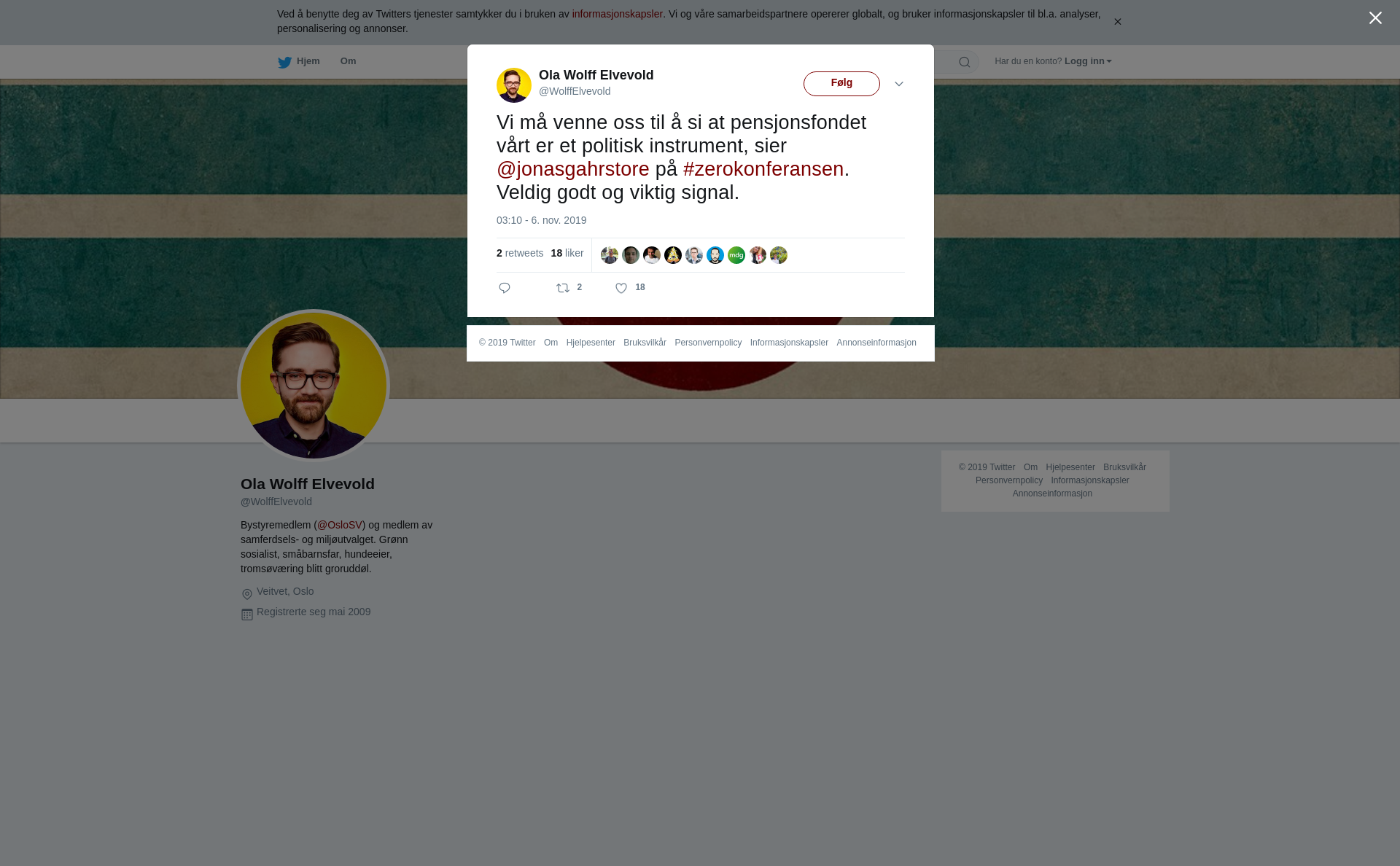 RT @WolffElvevold: Vi må venne oss til å si at pensjonsfondet vårt er et politisk instrument, sier @jonasgahrstore på #zerokonferansen. Veldig godt og viktig signal.