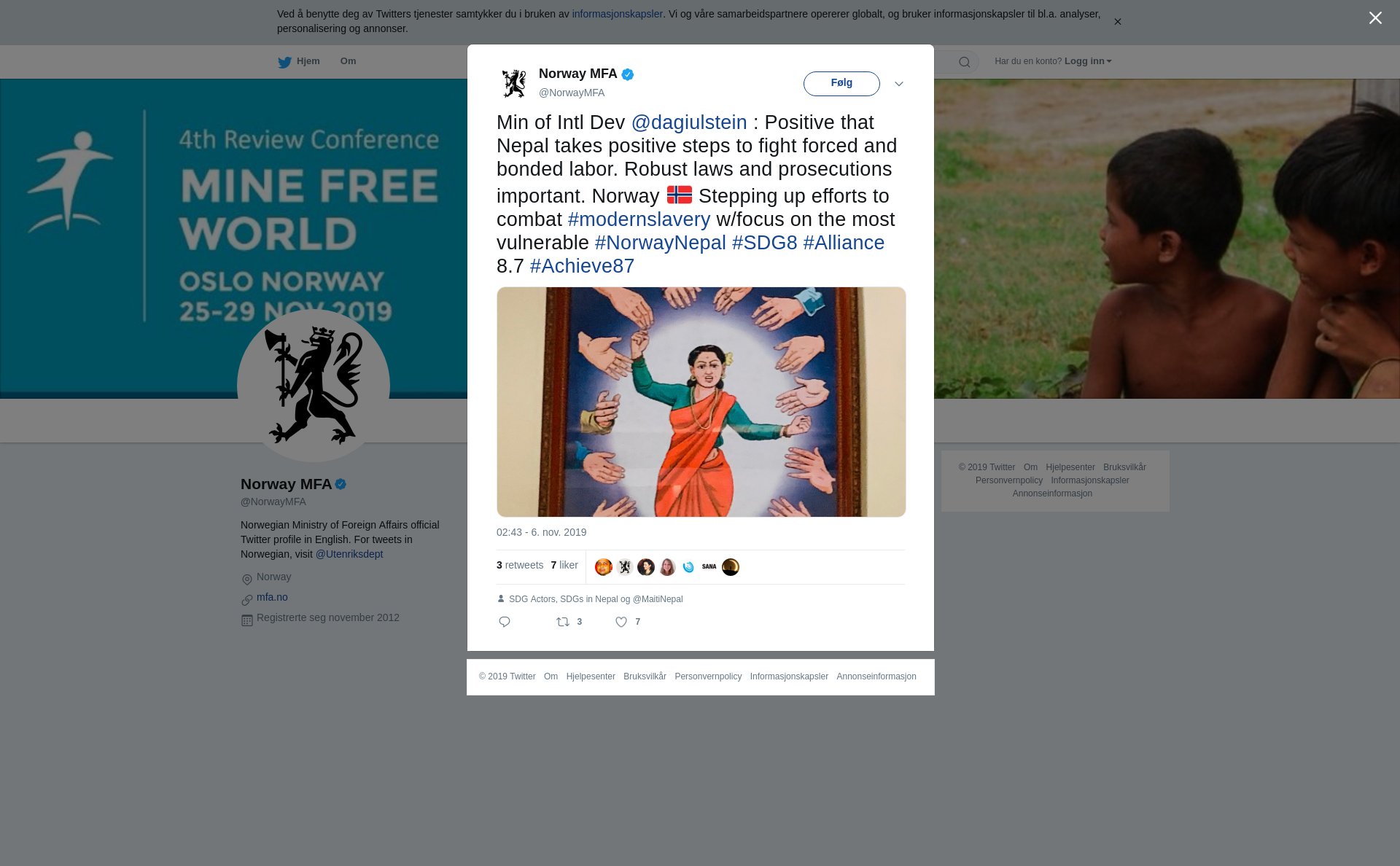Min of Intl Dev @dagiulstein : Positive that Nepal takes positive steps to fight forced and bonded labor. Robust laws and prosecutions important. Norway 🇳🇴 Stepping up efforts to combat #modernslavery w/focus on the most vulnerable #NorwayNepal #SDG8 #Alliance 8.7 #Achieve87 https://t.co/07bE7TIzys