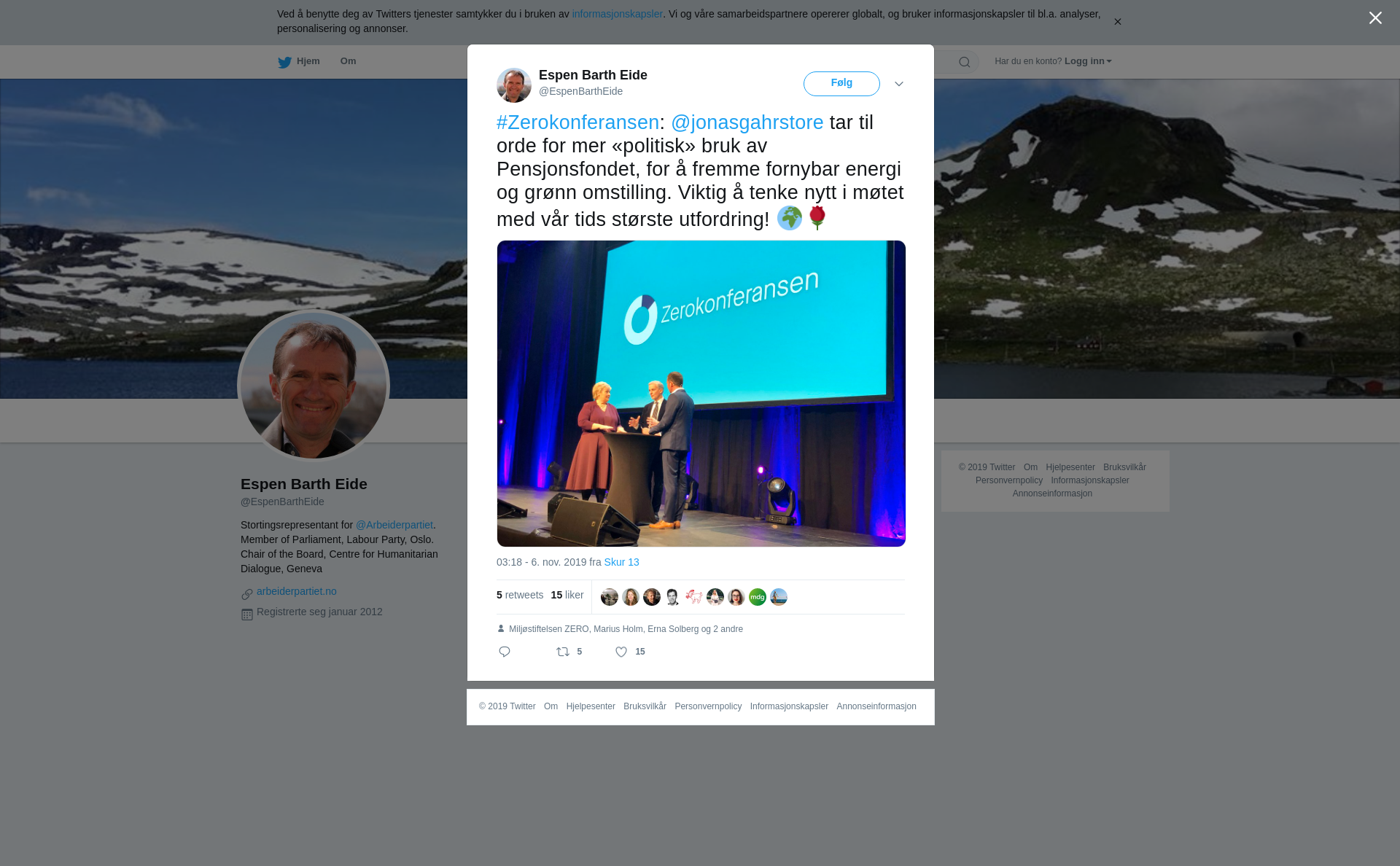 #Zerokonferansen: @jonasgahrstore tar til orde for mer «politisk» bruk av Pensjonsfondet, for å fremme fornybar energi og grønn omstilling. Viktig å tenke nytt i møtet med vår tids største utfordring! 🌍🌹 https://t.co/3fpCv61c7m
