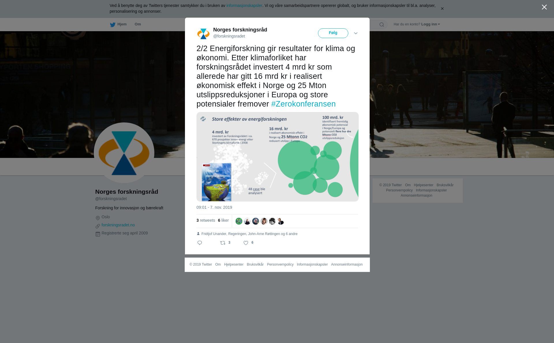 RT @forskningsradet: 2/2 Energiforskning gir resultater for klima og økonomi. Etter klimaforliket har forskningsrådet investert 4 mrd kr som allerede har gitt 16 mrd kr i realisert økonomisk effekt i Norge og 25 Mton utslippsreduksjoner i Europa og store potensialer fremover #Zerokonferansen https://t.co/fLYNTTefkM