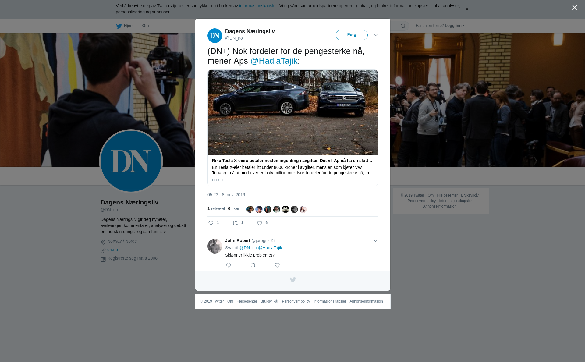 En Tesla X-eier betaler litt under 8000 kroner i avgifter, mens en som kjører VW Touareg må ut med over en halv million mer. Nok fordeler for de pengesterke nå, mener Aps Hadia Tajik.