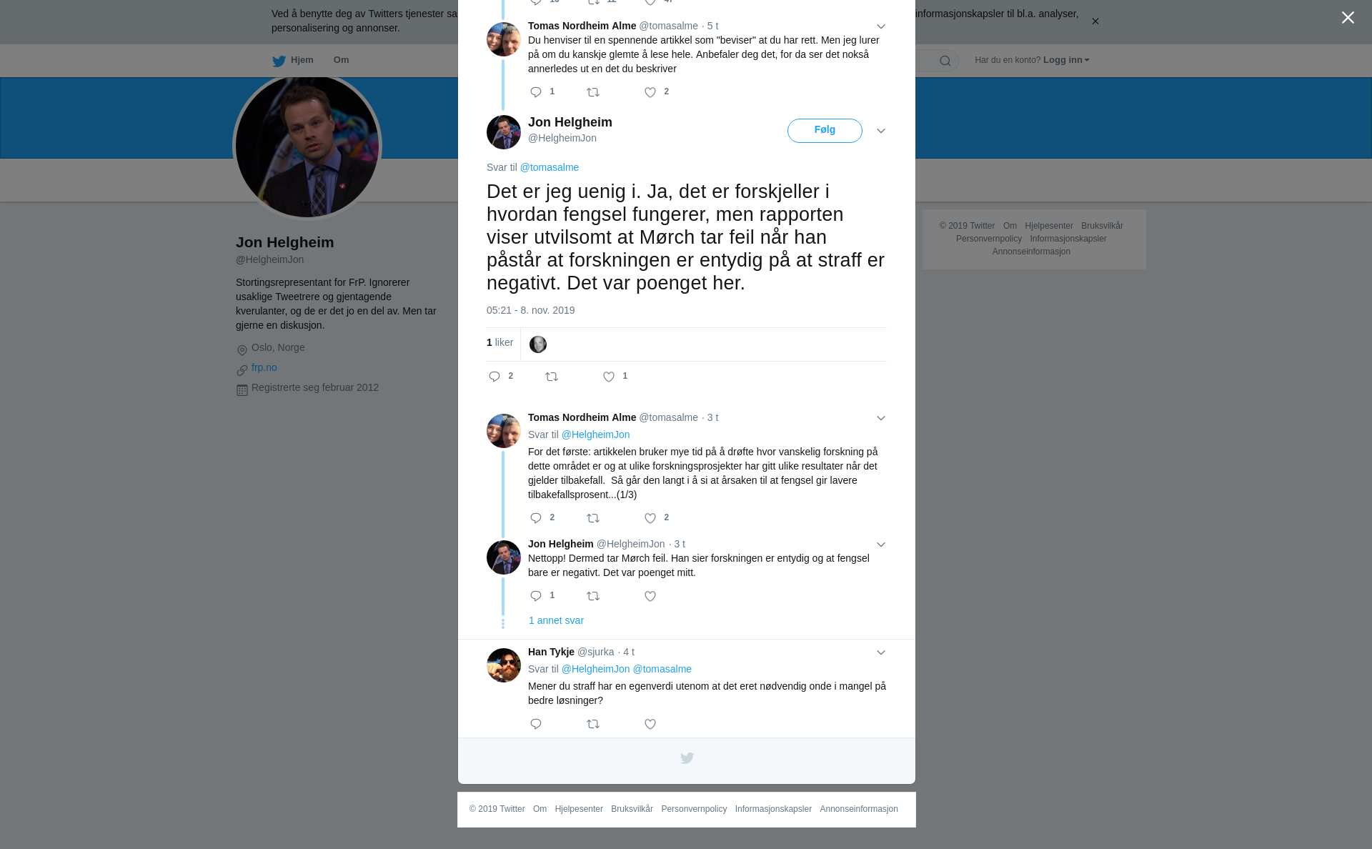 @tomasalme Det er jeg uenig i. Ja, det er forskjeller i hvordan fengsel fungerer, men rapporten viser utvilsomt at Mørch tar feil når han påstår at forskningen er entydig på at straff er negativt. Det var poenget her.