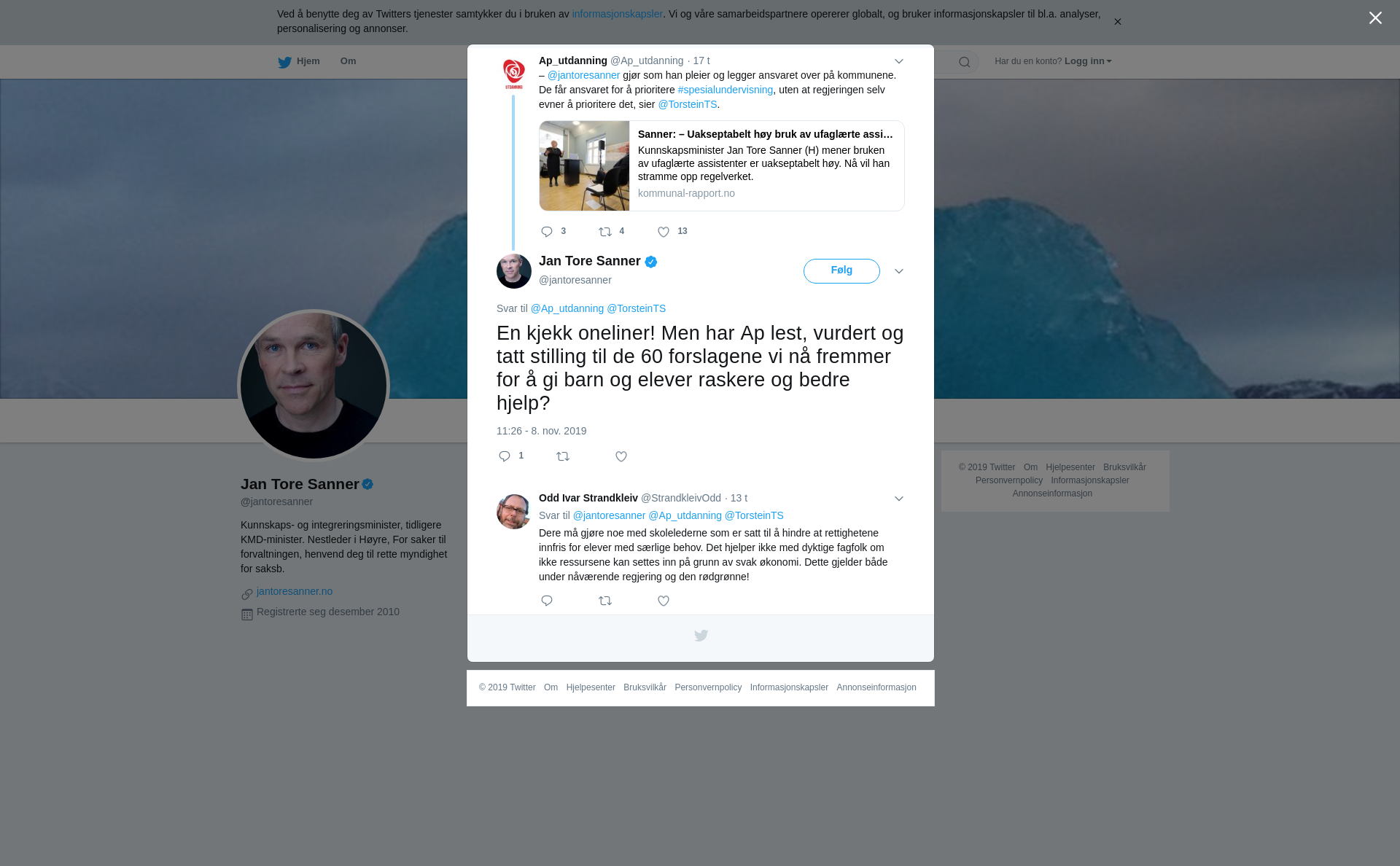 Innlegg fra Jan Tore Sanner